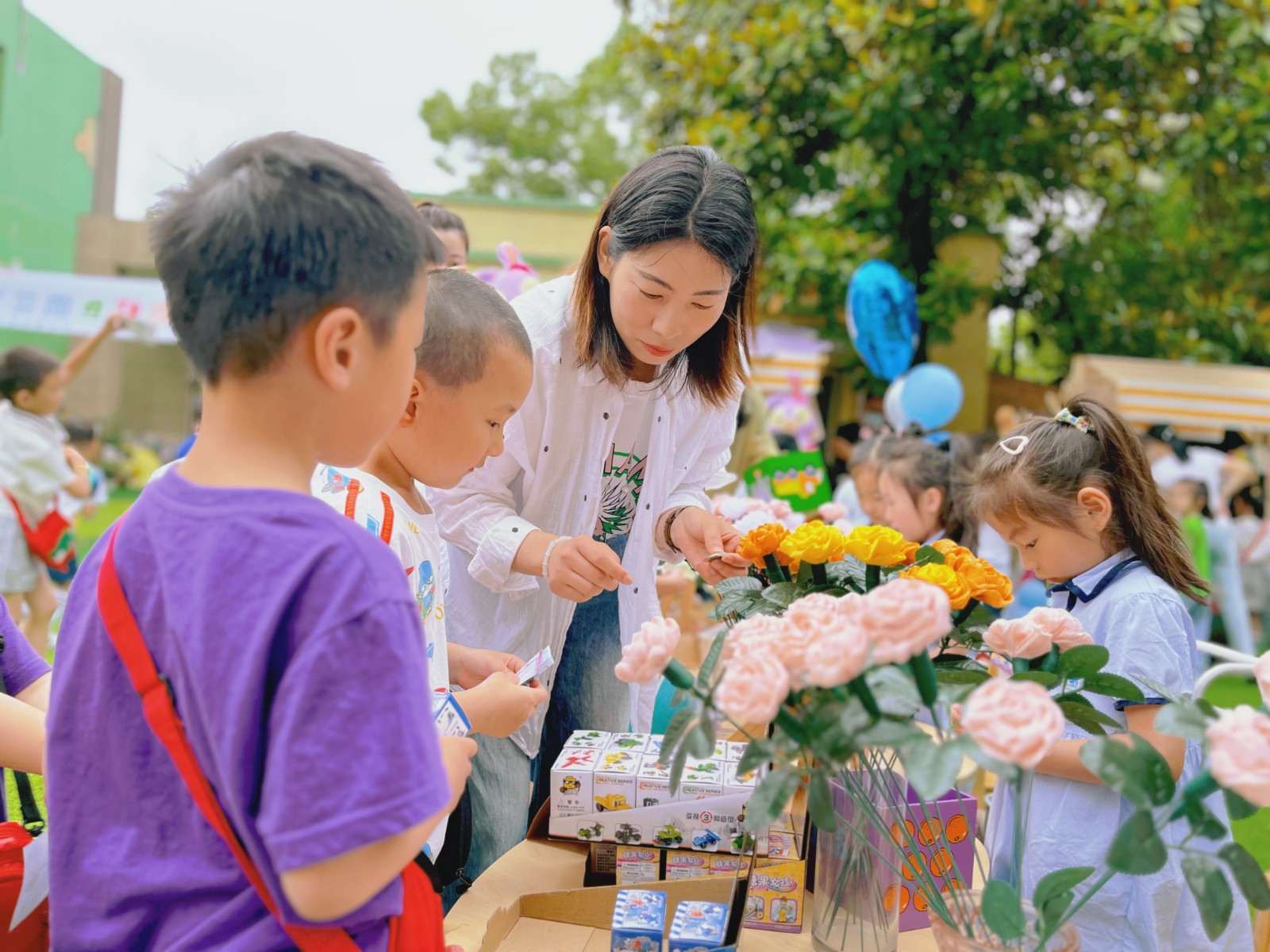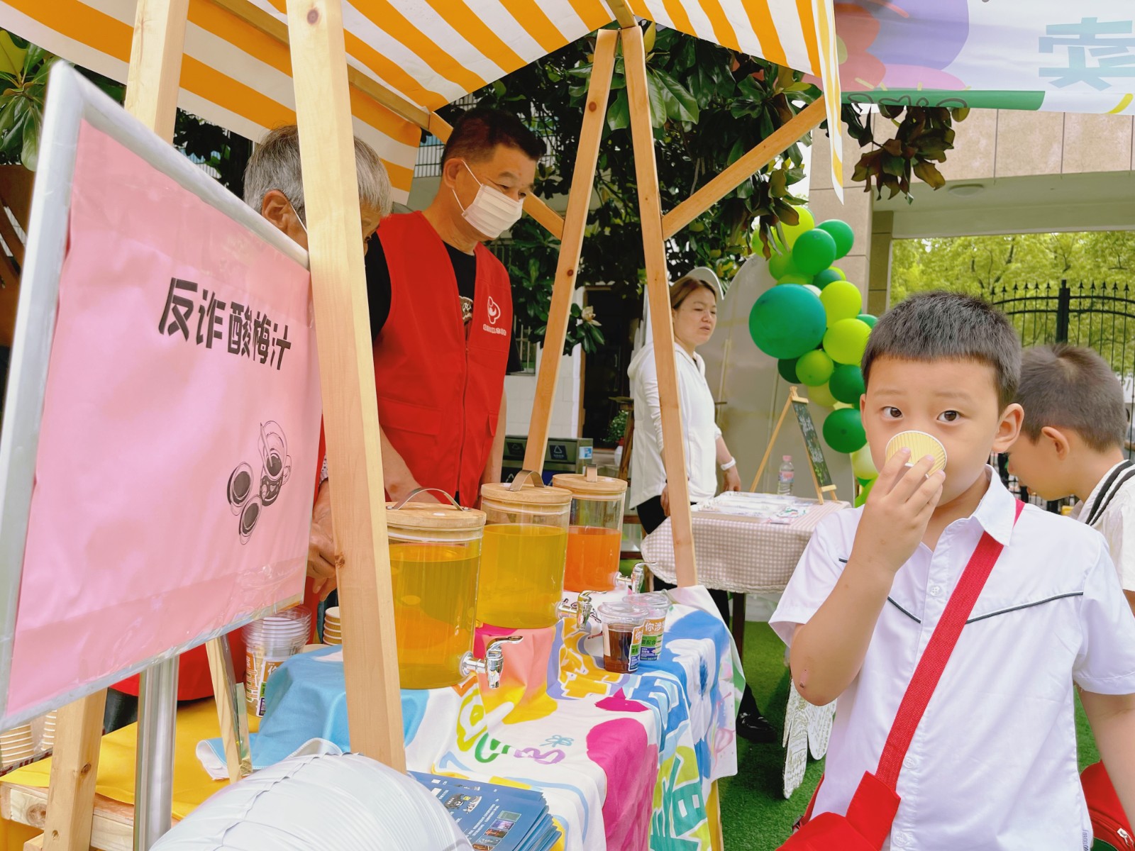 琳琅满目的商品、此起彼伏的叫卖……本次活动在“彩虹色的花”爱心义卖中拉开序幕。小朋友们兴高采烈地守在自己的摊位前,使出浑身解数倾情推销……这样的场景并不陌生,但作为摊主还是头一次。另一边,垃圾分类游戏区也是人头攒动。“大富翁”灌输垃圾分类的知识,让小朋友们“无法自拔”。活动现场处处洋溢着欢乐的氛围。“六一年年过,但年年都有新花样”。炼化社区党委书记朱明章表示,“气球乐园、反诈酸梅汤、“芒种”DIY、皮影戏、民族服饰初体验……像这样寓教于乐的‘六一‘儿童节,既让小朋友们体验了民俗,也让他们懂得了关爱,有趣又有意义”。活动结束后,“爱心派送员”通过义卖所得,为辖区快递员、保洁员……等一线工作者送去了“芒种”清凉。