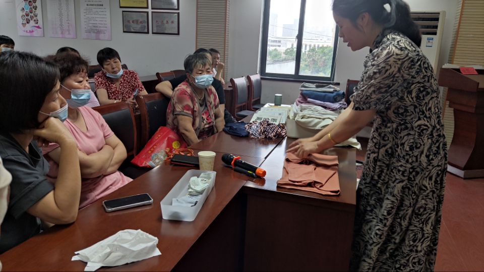 “大家知道什么是收纳吗?”“你们的衣物是如何收纳的?”黄老师通过提问方式,让居民了解整理收纳的重要性、基本原则以及如何进行衣橱整理等知识。在普及了基本收纳常识后,黄老师又手把手教学,与居民互动。居民们纷纷拿起衣物动手实践起来。居民焦大姐激动地说,收纳培训不仅学习了衣物正确折叠收纳整齐的基础内容,还学到了对家居空间进行规划、调整,让物品的定位更合理。