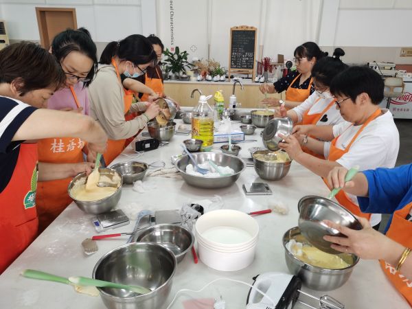 学员们在校内系统学习了农产品安全生产培训,随后,学员们桂语坊乡土体验馆参观后开展实践教学,学习西式点心制作技巧,在班上学会了蛋黄酥、雪花酥及戚风蛋糕的做法。在6月9日第二期的班上,老师还会为大家带来农产品现代化营销技术和传统小吃营养搭配与扩展的讲解与教学。