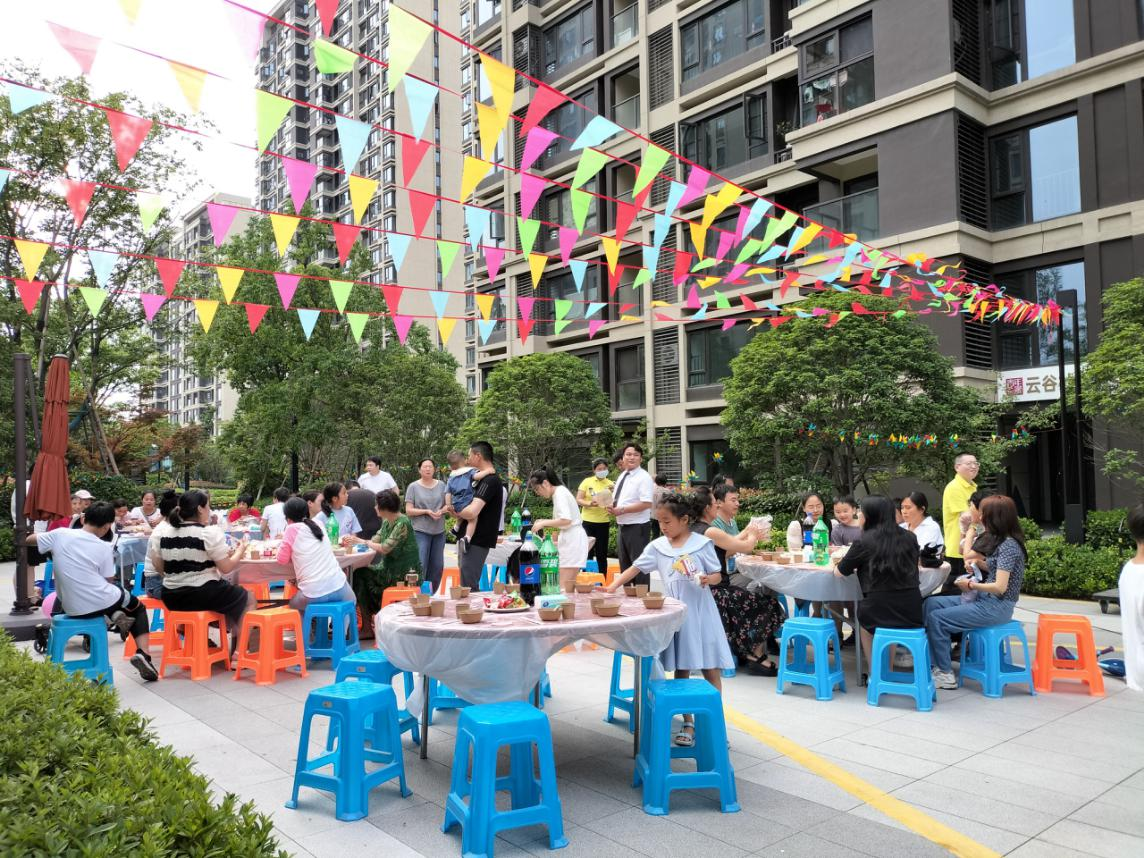 63下午,初夏草盛花开微风徐徐前江街道云谷社区联合万科物业举行一场特别的社区家宴”——参加家宴的居民各显身手,纷纷带来自己亲手做的家乡菜,土豆饼、泰州干丝、毛豆、红烧鱼、红烧肉、土豆茭白、狮子头、酒酿圆子加上社区专门准备的当季美食小龙虾。居民围坐在社区的广场,品尝着各地的美食,分享着自己家乡,聊着家常,欢声笑语此起彼伏,像过年一样热闹。