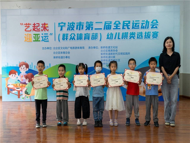 6月4日,“艺起来迎亚运”宁波市第二届全民运动会(群众体育部)幼儿棋类选拔赛在北仑区柴桥街道新曹文化礼堂火热开赛。现场共同见证了全区65位优秀小棋手的比赛风采。