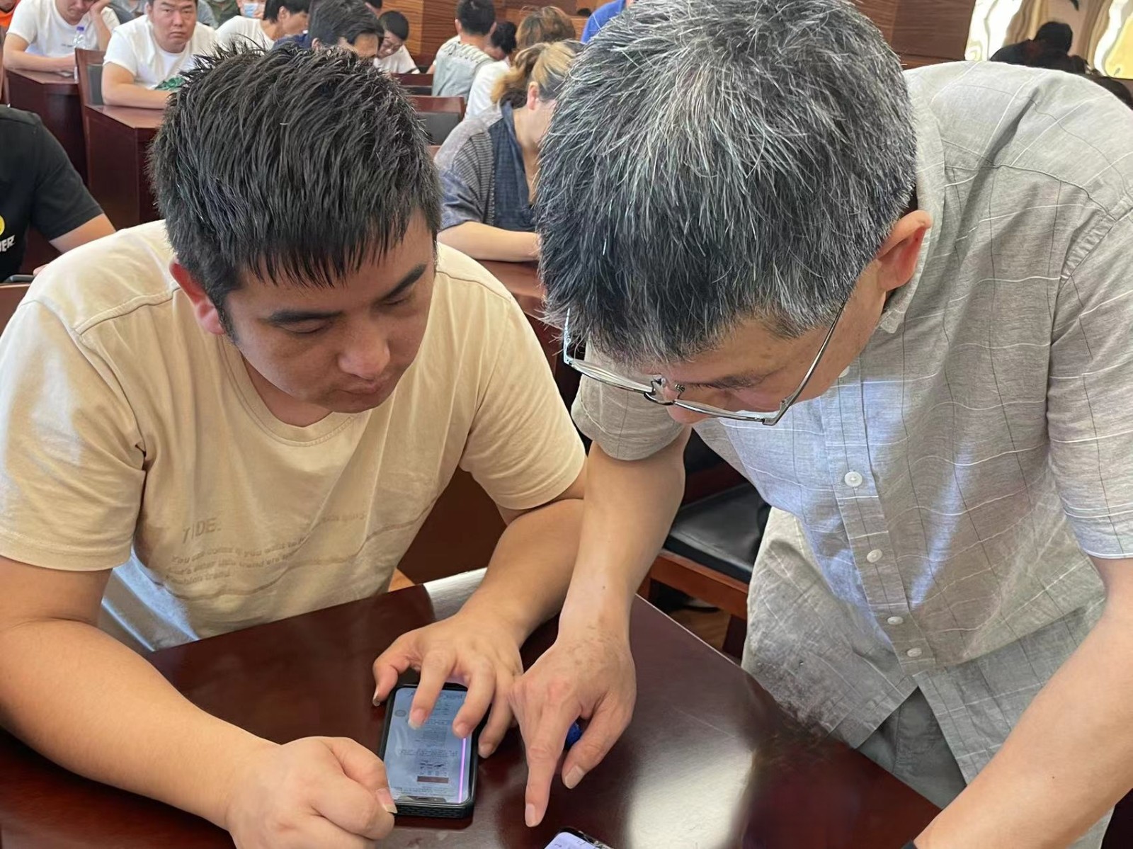 据了解,急救员培训分为二个阶段。第一阶段为线上理论学习:通过“来浙学急救”微信小程序进行学习,观看“心肺复苏”“创作急救”和“运动知识”三个模块的视频进行理论自学;第二阶段为线下实操训练:心肺复苏、气道异物梗阻、中暑、创伤应急救护等操作技能。首次培训内容为指导学员如何进行第一阶段的线上理论学习,老师现场为学员们演示“来浙学急救”微信小程序的操作流程和要求:第一步登录“来浙学急救”完善个人资料,上传个人照片;第二步在手机端完成三个模块的视频学习;第三步在线完成报名,进行“练习测试”题库训练、理论备考;第四步在线进行理论考核(80分为合格成绩,理论合格才能参加操作考核)。参训人员在培训过程中都认真听讲,跟着老师完成了个人信息,掌握了视频模块的学习方法。培训过程中,老师还对手机操作不熟悉的学员进行一对一的指导,确保每位参训者掌握“来浙学急救”微信小程序的操作要领。