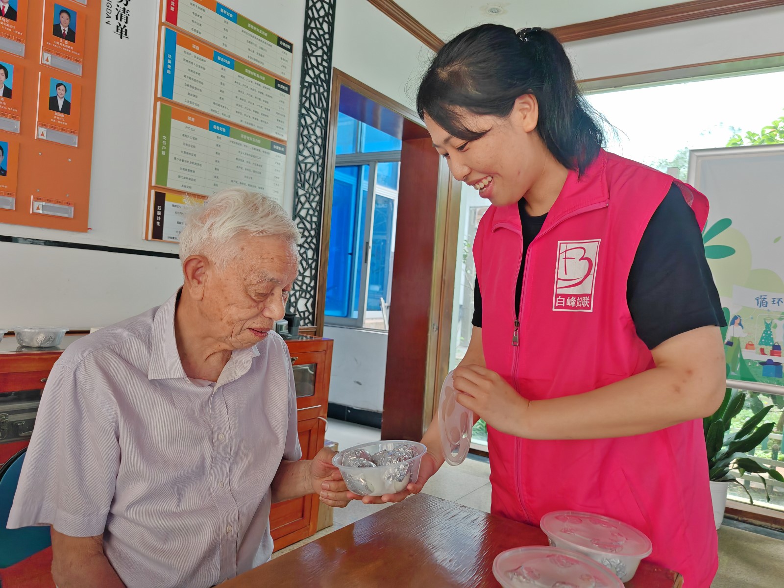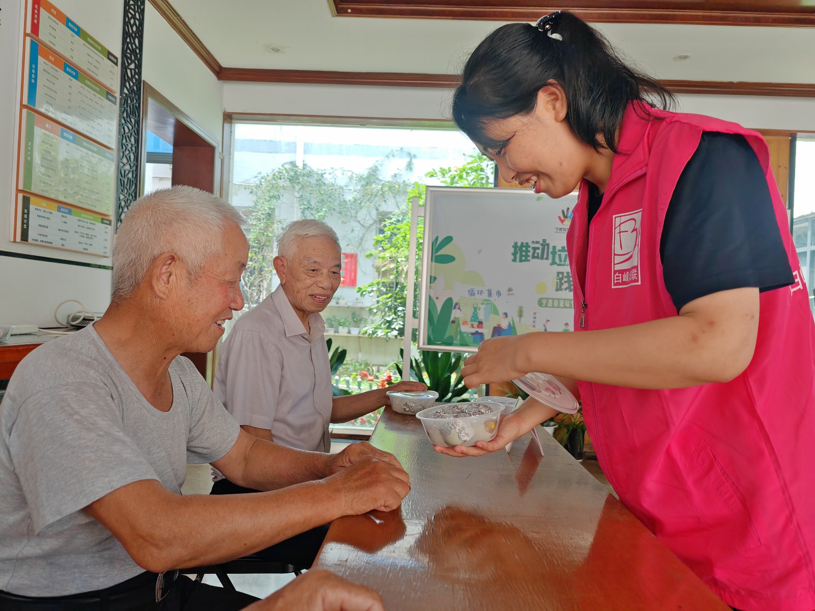 下午,爱心结对单位白峰老百姓大药房的工作人员和社区志愿者一边为居民检查身体、量血压,一边结合居民日常生活和健康护理需求,从日常饮食、运动、心态调整等方面与居民谈论生活中的养生之道,并为身体各部位不适的居民进行推拿按摩,使用理疗仪器为居民进行理疗,同时赠送伤膏,以备不时之需。理疗结束后,在大家休息之余,社区工作人员将上午制作的糯米蛋蒸熟后送给在场的居民进行品尝,并送上节日的问候和祝福。