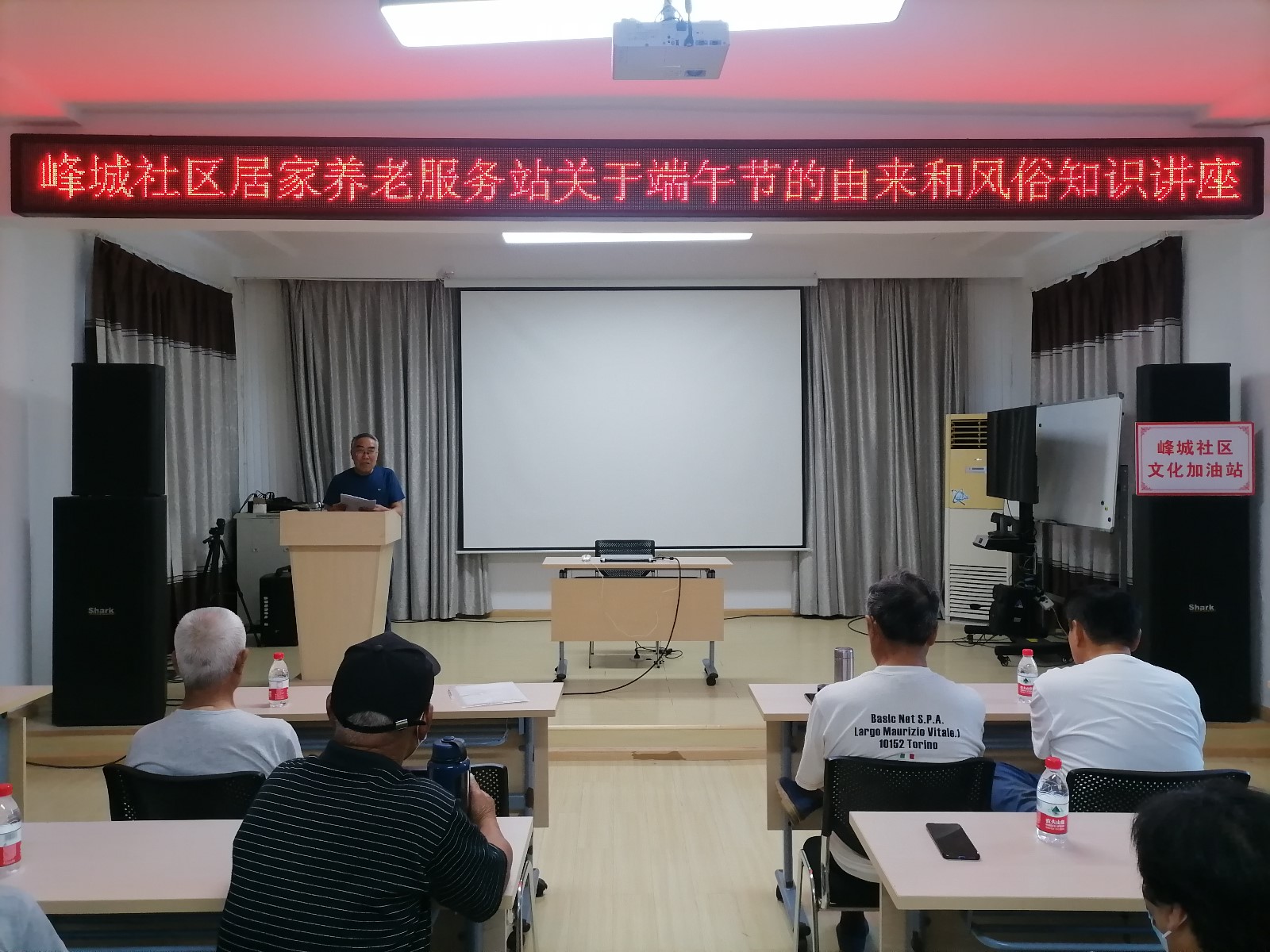 健康知识讲座结束后,峰城社区居家养老服务站宣讲人员以生动的语言详细讲述了端午节的由来、习俗以及一些传统活动,充分引导在场老年人感受中华文化魅力,营造了欢快、祥和的节日文化氛围。