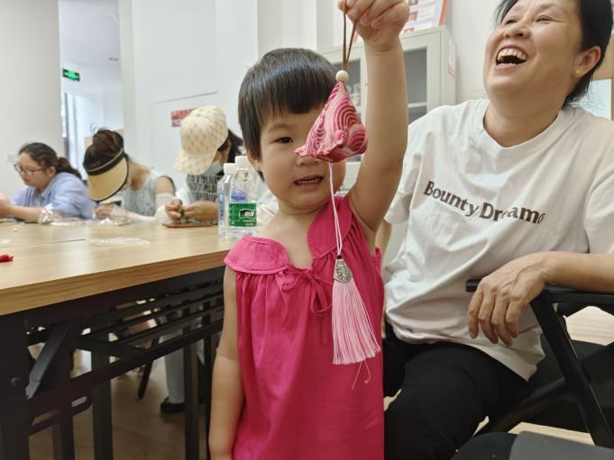 最后居民朋友们一起合影纪念,把自己亲手制作一个款式独特的香囊,无论是戴在孩子身上,还是自己佩戴,亦或是送人,都是一个很好的选择。