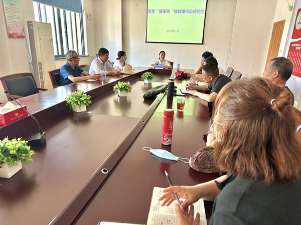 陈华浦社区党群服务中心书记张晓燕先向大家介绍了陈华浦社区登革热疫情发生的风险评估结果,希望大家务必引起高度重视。随后,她向大家普及了登革热防控知识,并指出“除积水、灭蚊子”是“防登革、保健康”的关键,要求大家组织力量强化日常巡查,全面开展翻盆倒罐工作,清除积水;定期做好蚊虫消杀事宜,消灭蚊媒孳生地。同时,还要加强宣传,大力普及登革热知识,形成良好氛围。