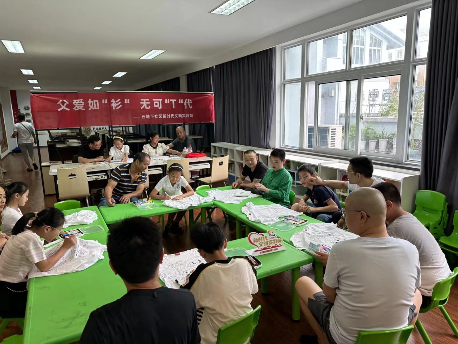 父爱不动声色,却如山般深沉。在父亲节当日,618日上午,石塘下社区图书分馆组织开展“父爱如‘衫’ 无可‘T’代”亲子手绘活动。本次活动吸引了社区网格内青少年、新就业形态劳动者共10余对父子参加。