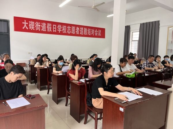 会议首先由大碶成校王校长对与会人员讲解了假日学校的重要性和今年的要求,要将安全工作放在首位,要进一步提高办学质量,树立创新意识,并在多年办学经验的基础上做出更科学更合理的安排,业务上各社区要结合自身特色开展教学活动,重点做好、做强品牌特色。其二做好台帐资料等。接下来结对活动正式开始,傅春燕老师对做好假日学校与教师结对衔接工作的具体事项作了说明。随后由街道关工委负责人就业务方面进行具体布置和安排。
