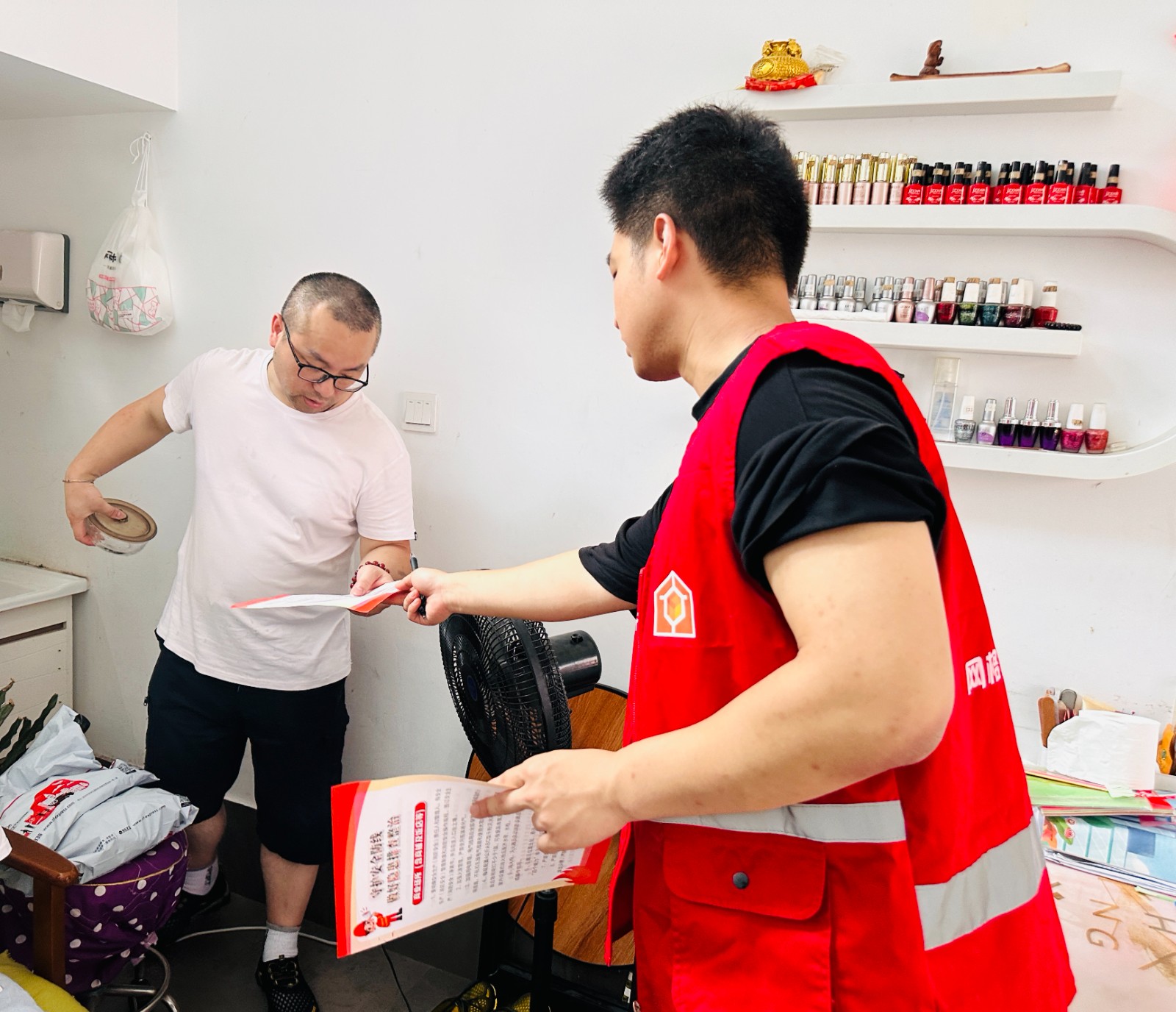 近日,静远社区上城印象网格员深入辖区商铺,开展入户式消防安全宣传。宣传活动中心,网格员将一张张内容丰富的宣传资料发送到商户手中,并走进沿街店铺帮助指导商户如何排查消防安全隐患,通过面对面讲解的方式向商家详细讲解了日常防火注意事项。同时,网格员还特别提醒商户定期开展自查自纠工作,注意用火、用电安全,日常经营中要确保疏散通道的畅通,维护自己和他人的生命财产安全,避免火灾事故发生。此次宣传活动旨在加强日常消防安全的自查自纠,强化消防安全管理,提高消防安全意识,时刻绷紧安全这根弦。