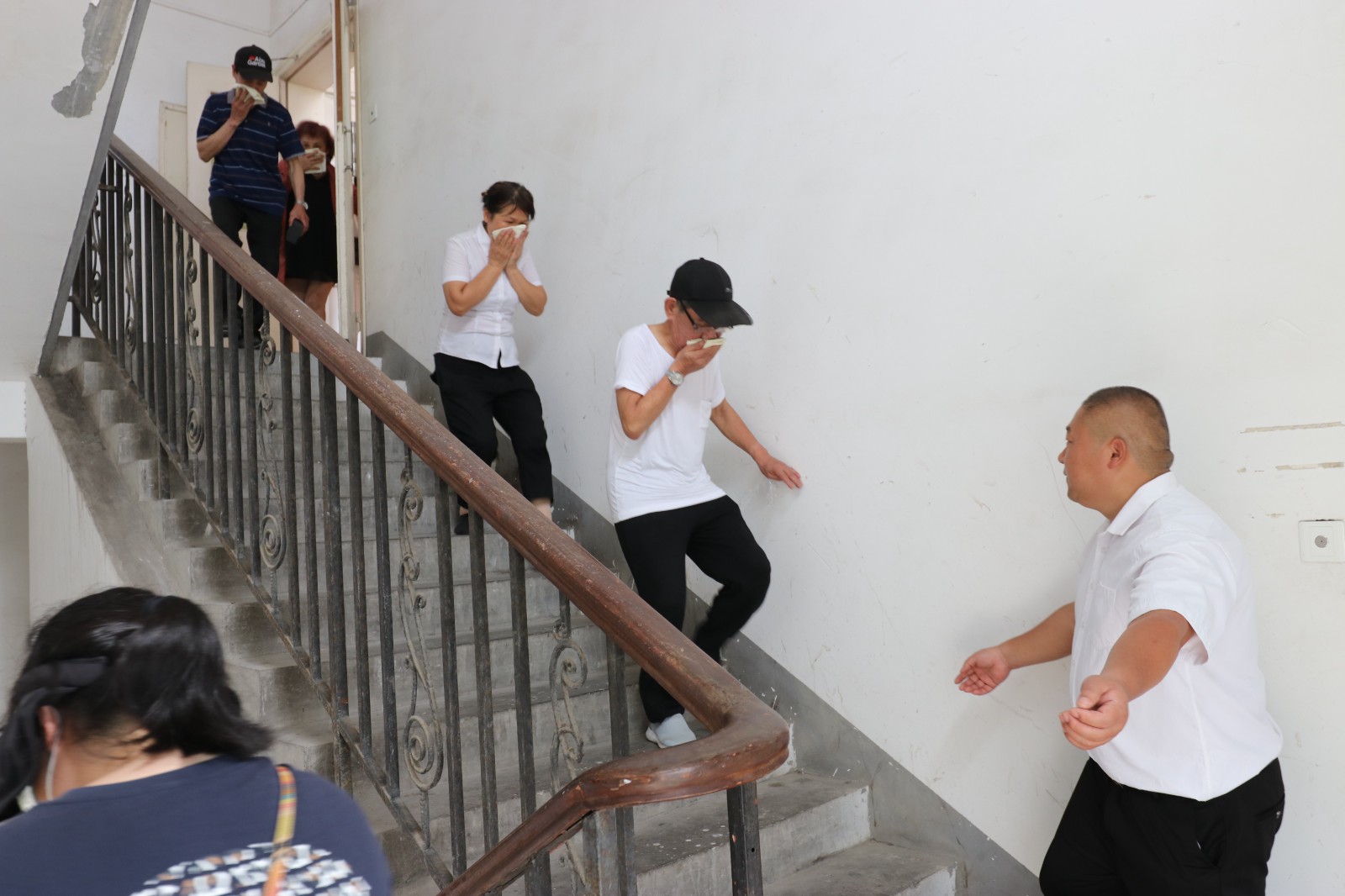 上午九点,育才社区网格长们、邻里花园物业工作人员和居民们准时在邻里花园集合,现场开展火灾模拟演练。首先,物业安保队长向大家详细介绍了灭火器的使用方法、灭火要领及火灾发生后的疏散、逃生要领。大家在演练现场操作灭火器灭火、并模拟火灾发生后的逃生措施。