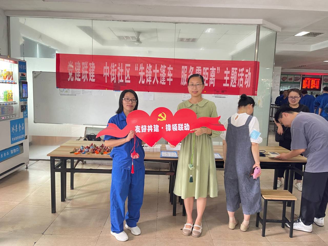 6月20日中午,中街社区党委走进党建联建单位明欣化工机械有限责任公司开展“先锋大篷车  服务零距离”主题活动。活动中,社区为企业员工们提供反诈骗知识、反邪教知识、健康知识宣传和免费量血压等便民服务。