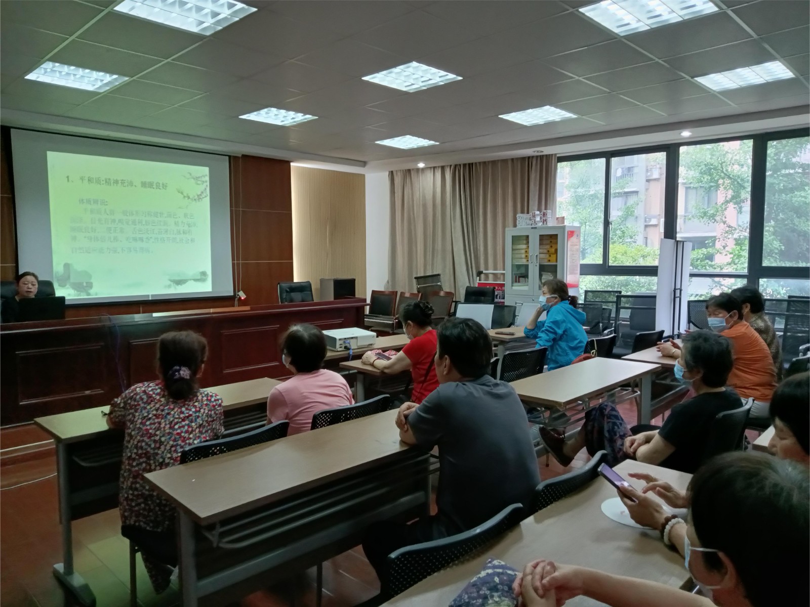 讲座中,医生向大家讲述:什么是养生?养生就是保养生命,旨在提升人体内在的生命力,即中医所说的“治未病”。医生还向大家介绍了九种体质,分别是:平和质、气虚质、阳虚质、阴虚质、血瘀质、痰湿质、湿热质、气郁质、特禀质等。然后,医生切入正题,向大家介绍了夏季时令的特点、养生原则、健康隐患、如何养生。医生还向大家介绍了阳康后的康复调理。这些知识让大家受益匪浅。