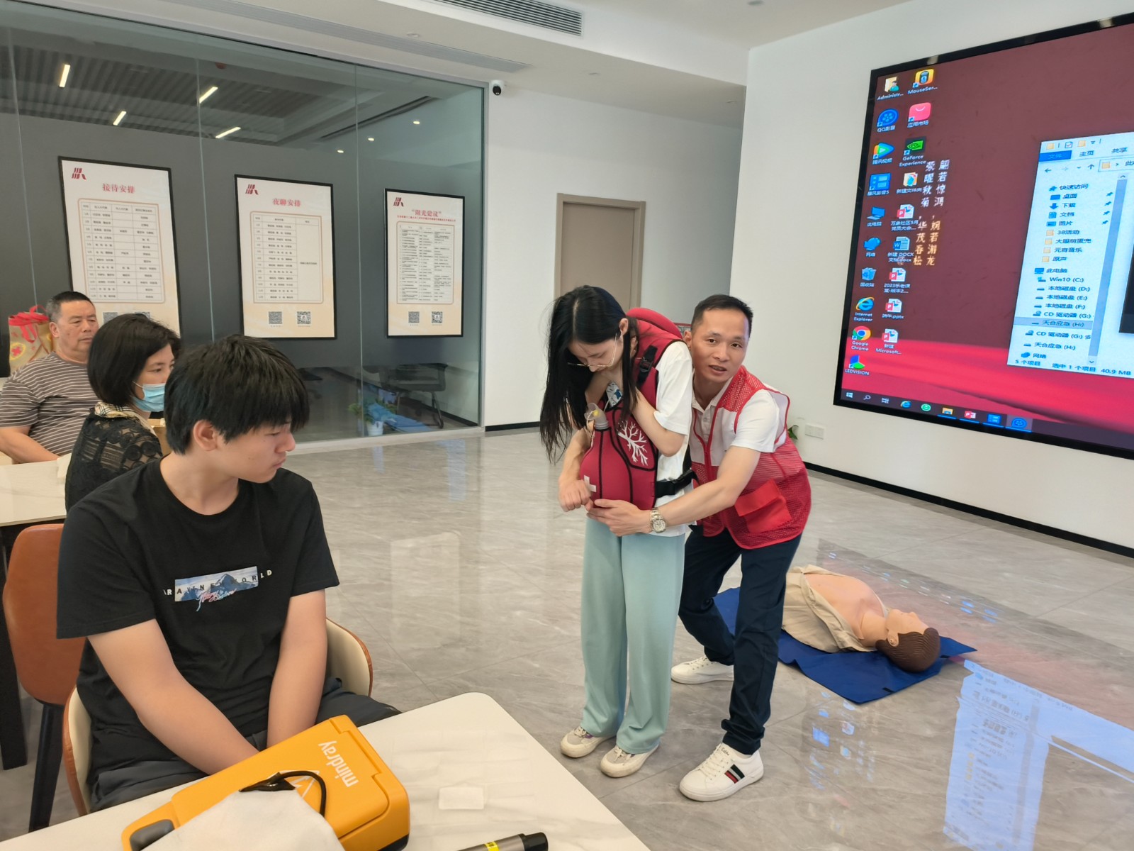 培训会上,授课老师用通俗易懂的语言讲解了心肺复苏、气道异物梗阻及AED等急救知识,并在现场示范练习心肺复苏术、气道异物梗阻急救等实用救护技术,取得了良好的培训效果。