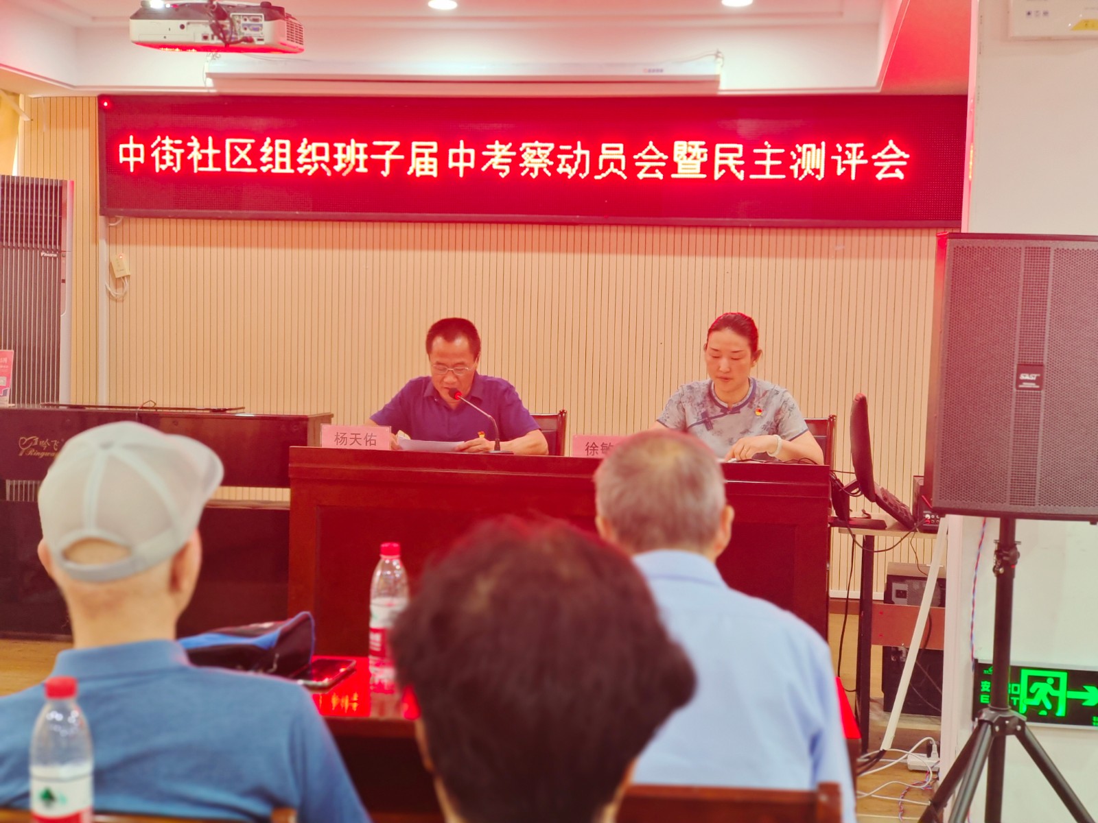 7月4日上午,中街社区在社区六楼会议室召开组织班子届中考察动员会暨民主测评会。会议流程如下: