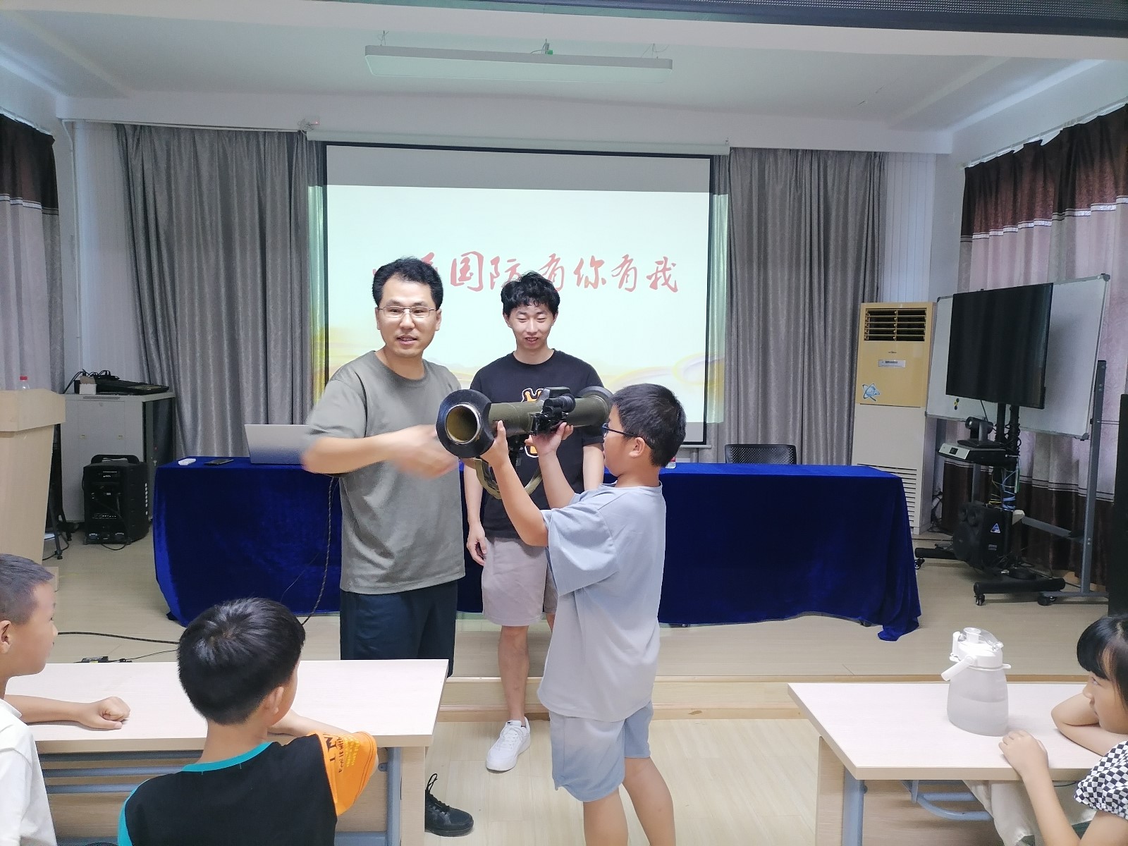 活动中,峰城社区党群服务中心负责人周宁从国防的含义、国防的由来、国防的基本内容、我国现代化国防建设、我国国防事业发展历程进行详细讲解,深入浅出地分析了当今我国的周边国际形势以及国家的安全问题。随后白峰街道退役军人服务站最年轻的退役军人蔡凌楠结合自己在部队的从军经历,详细介绍了军队生活,从最初的不适应到后来的不怕苦不怕累,认真做好每一项训练,努力完成各种考核,深情地讲述了自己的成长和进步,小朋友们听得津津有味。活动现场,还带来了退役军人服务站用于展览的装备,让小朋友们一一进行体验,最后给在场的每一位小朋友发放了一枚中国人民海军暨空军成立70周年纪念币,大家爱不释手,纷纷珍之藏之。