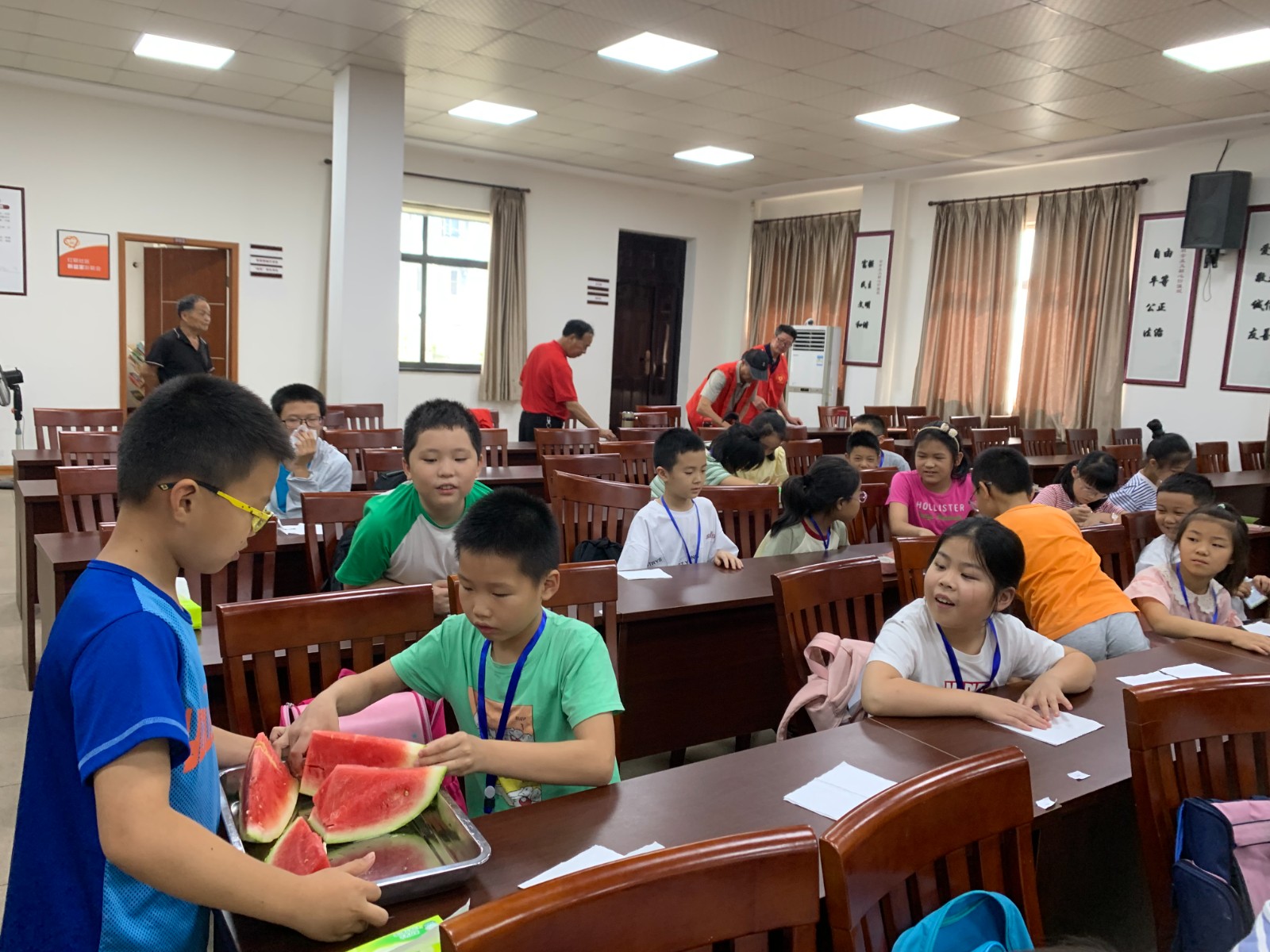 今天是小暑节,小暑开始进入伏天,三伏天通常出现在小暑与处暑之间,是一年中气温最高且又潮湿、闷热的时段。“在炎炎夏日爱心志愿者裘海爷爷为同学们特别准备4个大西瓜,让大家可以消消暑,感受到清凉和快乐,让我们一起谢谢裘海爷爷!”在品尝西瓜之前社区假日学校教导主任陈德阳向同学了介绍了两个大西瓜的来历,教育同学们要学会感恩,同时叮嘱大家吃东西之前要洗手,预防病从口入,培养养成勤洗手的习惯。孩子们将鲜切第一块西瓜送给老师,第二块西瓜送给“五老”志愿者,第三块才送给他们自己。五十余位同学在桌前品尝“爱心西瓜”,纷纷赞叹“这个西瓜真甜,太好吃了”。