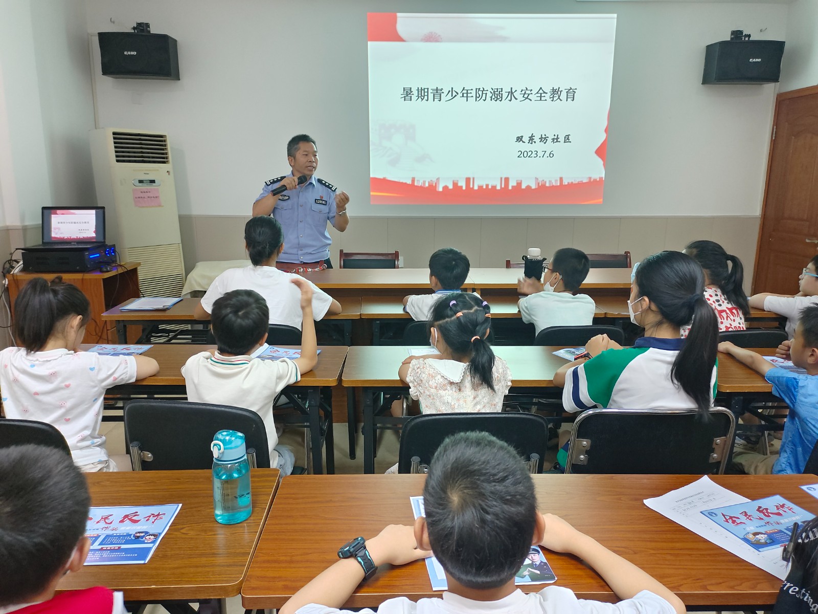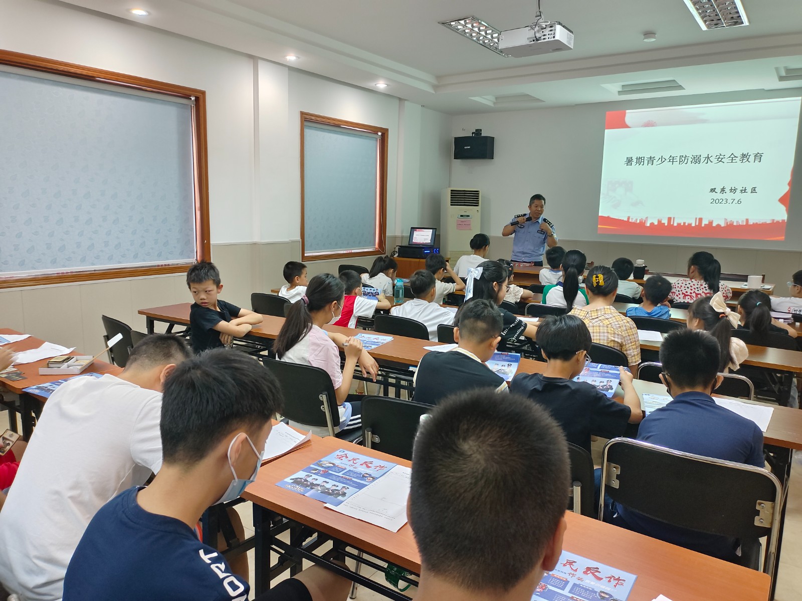 随着天气日渐炎热,溺水事故进入高发期。为保障未成年人生命安全,避免溺水事故发生,7月6日上午,双东坊社区邀请社区民警丁家伟为社区青少年开展“关爱生命 预防溺水”安全知识讲座。