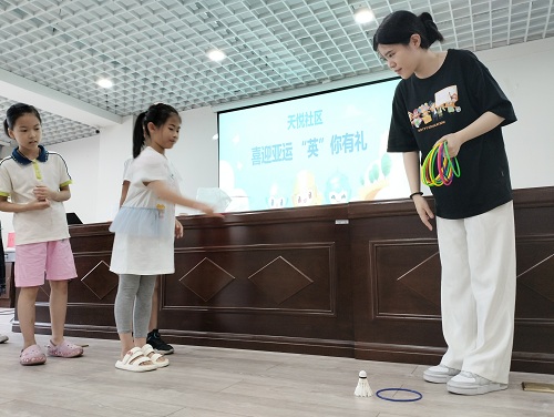 天悦社区希望通过英语课堂的形式,帮助辖区青少年拓展国际视野,学习不同语言文化,为亚运会的到来展示出青少年独特的文化魅力。