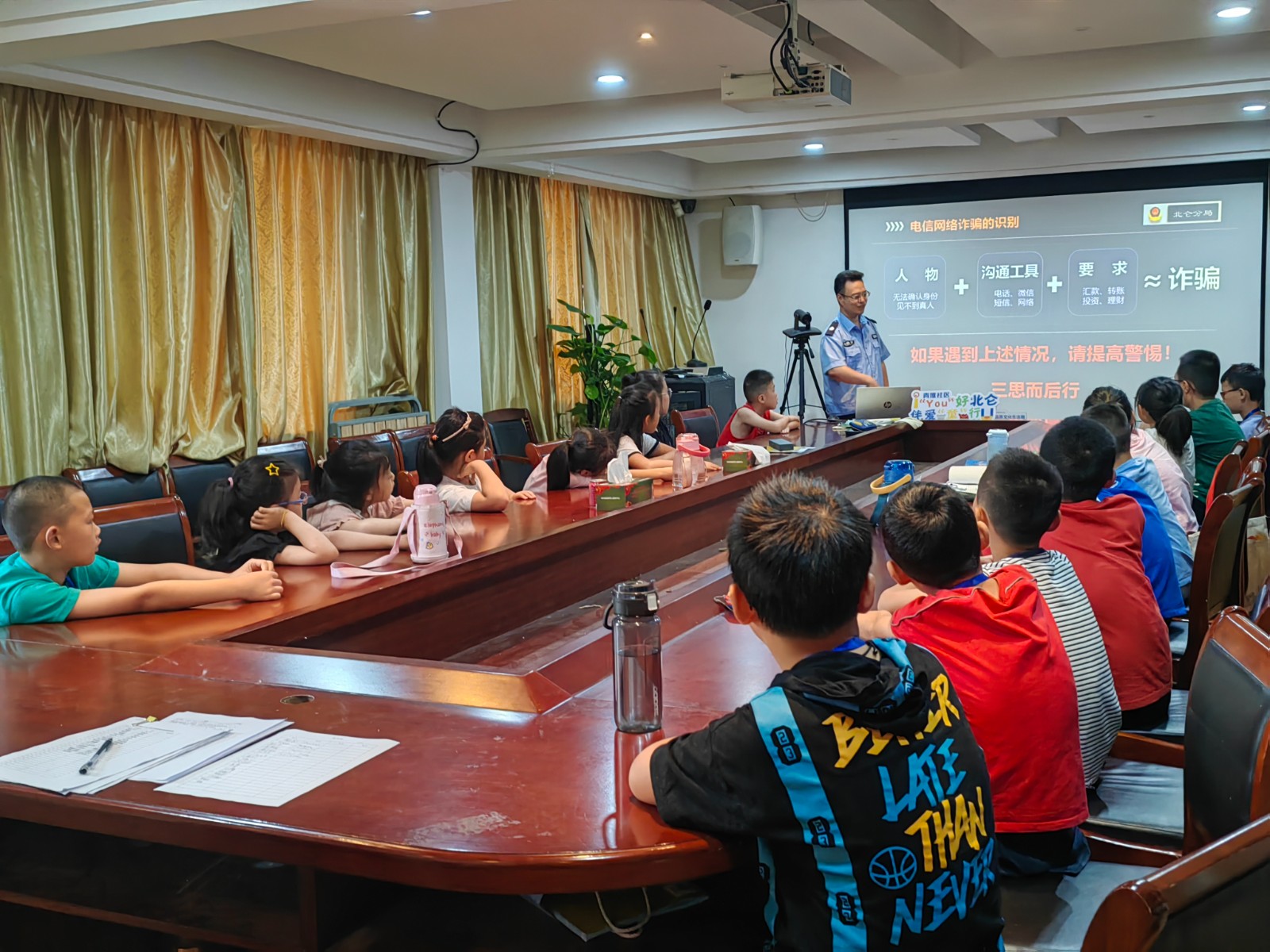 为切实提高学生识骗防骗意识和应对处置能力,压实青墩社区反诈主体责任,预防和减少校园电信诈骗案件发生,713日,宁波市公安局北仑分局小港派出所民警陈贤艇深入青墩社区暑期假日学校开展反诈宣传活动。