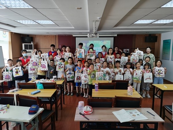 “小朋友们,今天我们就用家里带来的旧布袋来做一个环保布袋,大家发挥想象,制作出属于自己独一无二的专属环保布袋!”活动中,志愿者老师先介绍了本次活动的主题,讲解了塑料袋对环境的危害,倡导孩子们在日常生活中使用环保袋购物,通过变废为宝促进资源循环利用,争当低碳环保的践行者、宣传者、行动者,为绿色低碳环保贡献一份力量。随后志愿者们一一将画笔分发给小朋友们让他们在带来的布袋上充分发挥想象,尽情创意。鲜艳的花朵、彩色的地球、可爱的卡通字体……不一会儿,在孩子们的精心制作下一个个平淡无奇的环保布袋变得美观又独特。孩子们纷纷拿着自己的作品向小伙伴们展示,自豪地介绍自己的创意。