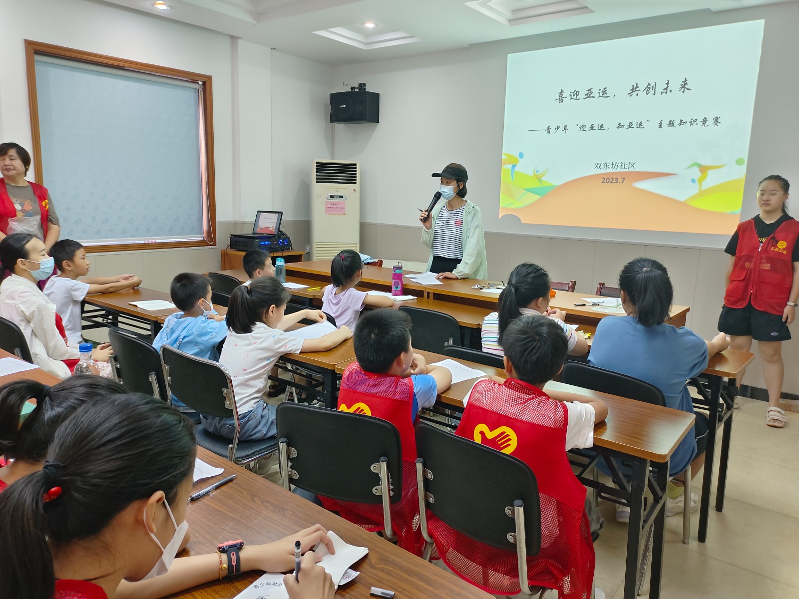 为喜迎杭州第十九届亚运会,在社区内营造全民迎亚运的氛围,7月13日,双东坊社区组织开展了一场喜迎亚运,共创未来——双东坊暑期青少年“迎亚运,知亚运”主题知识竞赛