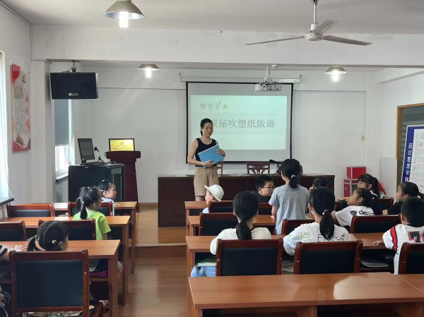 吹塑版画是将手工与绘画结合起来的一种民间艺术形式,它以吹塑纸为原料,利用其可折、可刻、可切、可剪、可揉的特征,经过剪、刻、撕、拼贴等方法制成版面,然后用多种方法印出来,成为一个美术作品。活动中,董老师采用循序渐进的教学方法,引导同学们大胆尝试,在板上随心所欲、轻松自由地进行各种肌理的表现, 一张张毫不起眼的吹塑纸,经过一番加工,成了一幅幅富有童趣的作品。