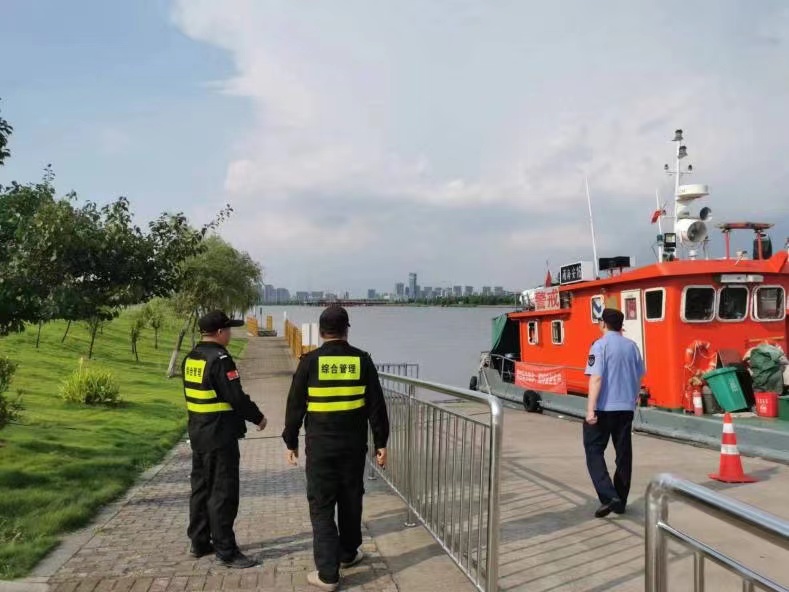 为此,城管前江中队“劝游队”在姚江边进行“早6晚8”不定时巡查,虽然天气炎热,但是队员们每天还坚持对朱界村、邵家渡等重点临水区域徒步巡查,及时制止“野泳”现象,消除溺水隐患。