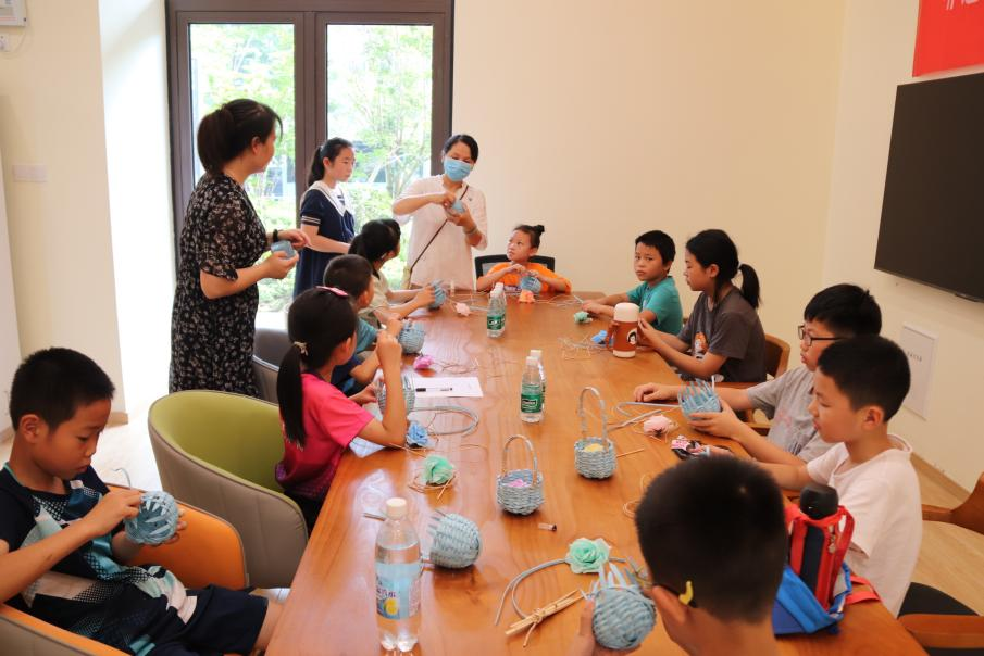 在活动中,青少年们首先认真聆听老师们的讲解,了解竹编这一项非遗手艺,青少们边跟着老师的讲解边自己动手做,竹子在上下缠绕做泾县,虽不够严谨,但是足够的简单自然,当看着编织成功的作品,这充满乐趣的过程让学生们成就感慢慢,最后青少年们把自己做好的竹编篮子一起合照。