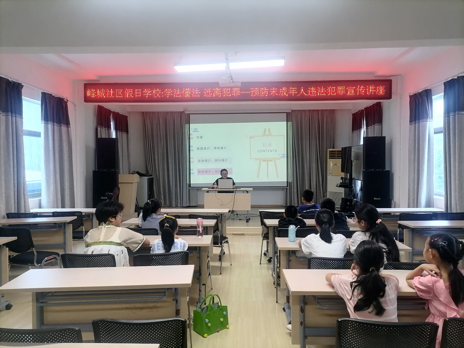 为进一步加强未成年人法治宣传教育工作,预防未成年人违法犯罪,7月19日上午,峰城社区假日学校邀请浙江联鑫律师事务所胡妍群律师,开展“学法懂法 远离犯罪”预防未成年人违法犯罪宣传讲座。