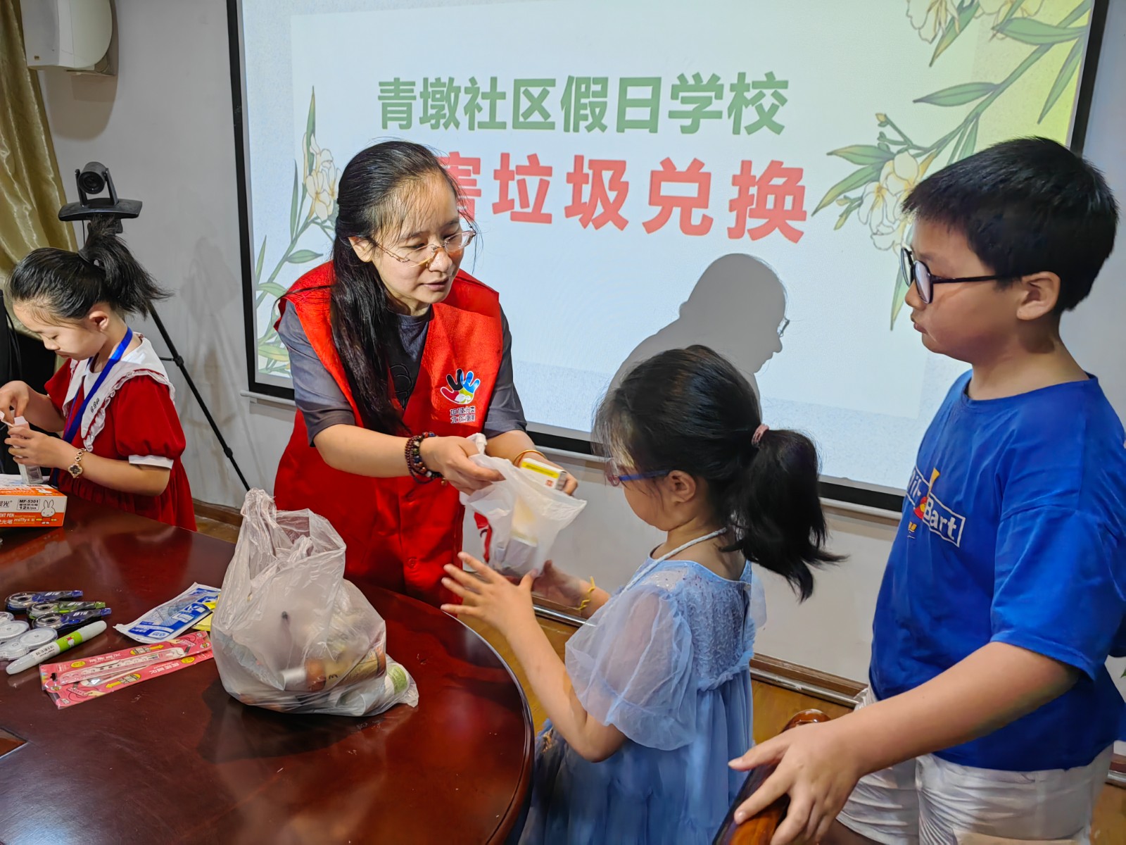 “垃圾分类,童心同行”青墩社区暑期假日学校开展有害垃圾兑换活动