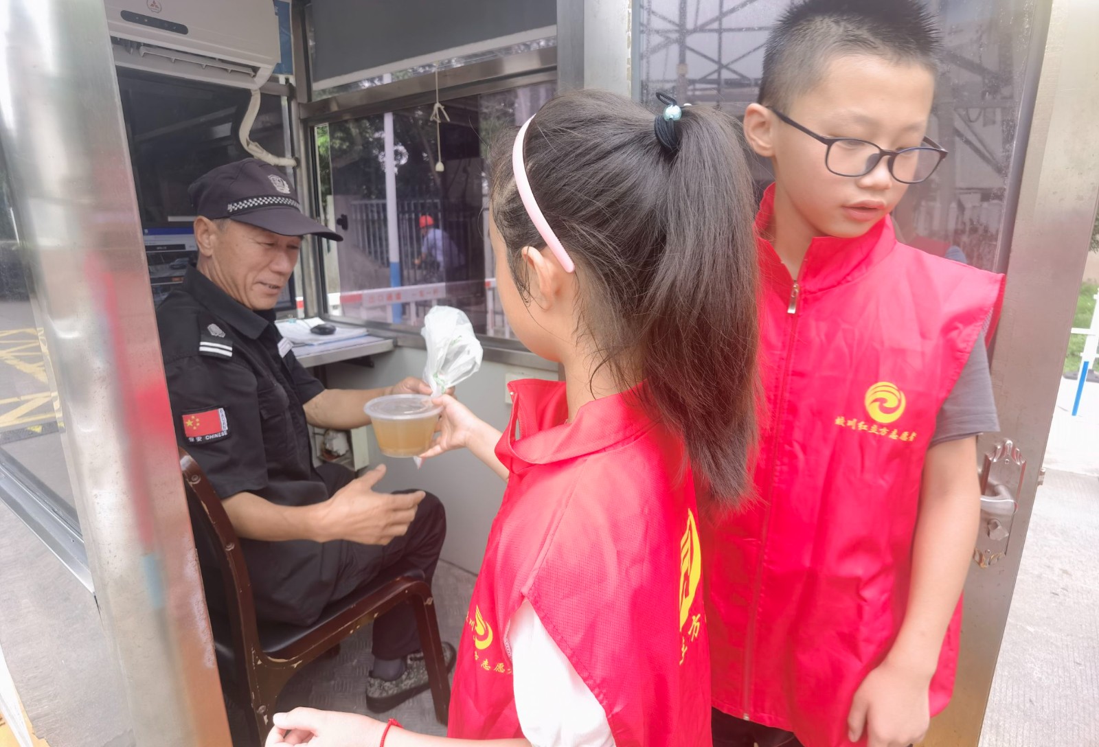 “这么热的天,快递小哥、物业人员都还在为大家尽心服务,觉得他们很辛苦,就想带给他们一份清凉。”便民服务站站长,同样也是菜鸟驿站老板娘张小娜说,几个协会负责人一商量,就有了今天的活动。社区网格员、镇电小菜园的锄禾志愿者带着小小志愿者们将绿豆汤等夏季饮品送到快递小哥、物业工作人员手中,为奋战在酷暑中的他们送上一份清凉,并提醒做好个人防暑工作,对他们不畏酷暑坚守岗位表示敬意。