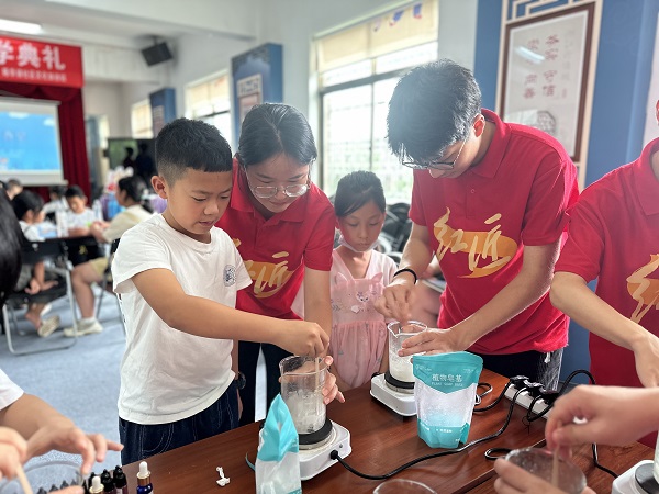 7月18日上午,宁波职业技术学院化学工程学院暑期社会实践团队走进陈华浦社区,为假日学校的孩子们带来了一堂手工皂制作课程。
