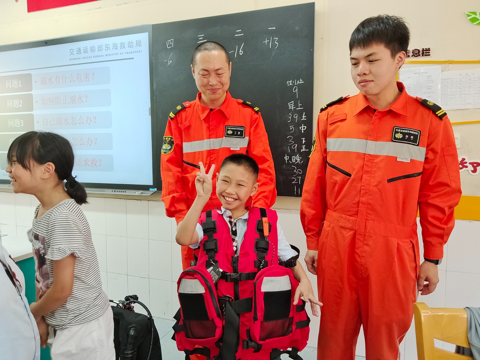课上,东海救助局队员借助PPT和短视频,向小朋友们介绍海上救助和讲解了溺水事故发生的情形和原因,并向他们普及如何避免溺水事故的方法以及当溺水事故发生时的应对措施。东海救助局队员从“什么是溺水、溺水的症状、如何自救与救助、如何预防溺水”四个方面告诉学生“防溺水”安全教育的重要性。随后,队员们通过与学生互动的方式,模拟了学生落水场景,演示了自救和互救的方法,并请学生尝试练习。此次宣讲活动的开展,将防溺水的意识深深扎根在学生心中,增强了学生的防溺水意识,丰富了学生的防溺水知识。
