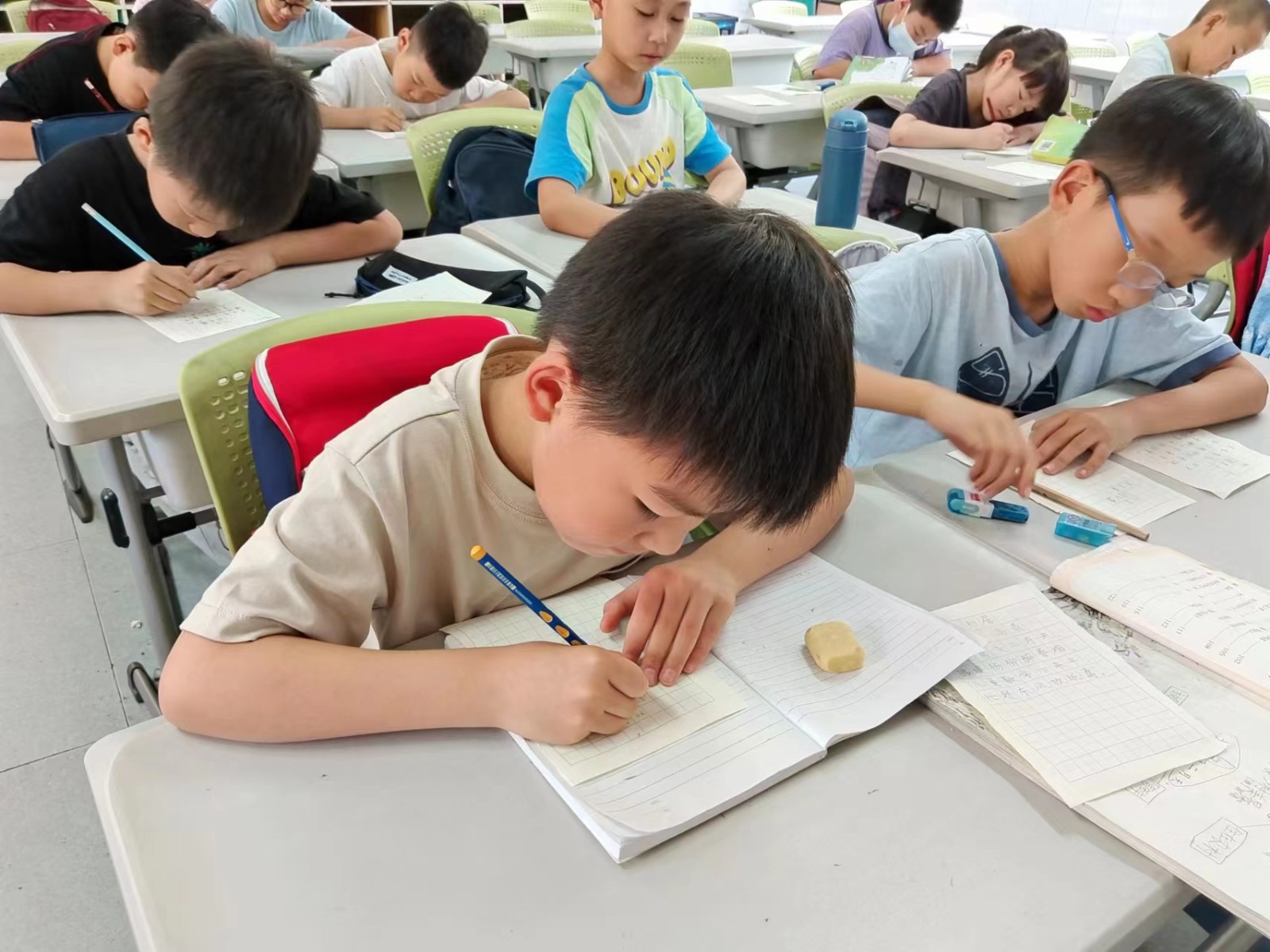 为丰富学生的暑假生活,体会书法的魅力,718日上午,芦中社区邀请柴桥实验小学的袁老师为假日学校的学生们上一堂“执笔书经典,古韵逸书香”课