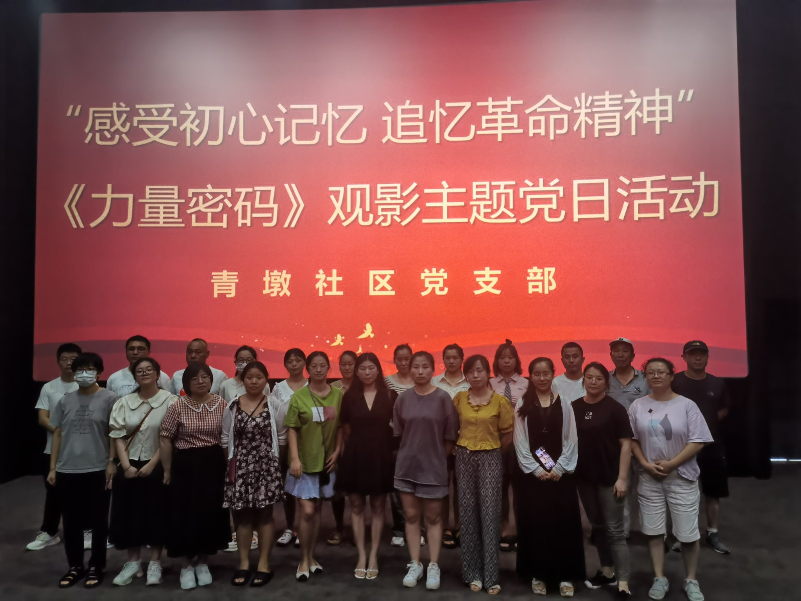 为深入推进学习贯彻习近平新时代中国特色社会主义思想主题教育,深入学习老一辈共产党人忠于信念、敢于斗争、勇于牺牲的伟大精神,激励党员干部在“两个先行”新征程上勇担当、作示范、走在前,722日下午,青墩社区党支部特开展“感受初心记忆 追忆革命精神”《力量密码》观影主题党日活动。