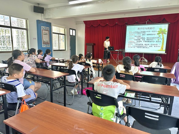 7月21日上午,陈华浦社区假日学校邀请霞浦成校郑雪雅老师开展关于提升自信的心理健康讲座。