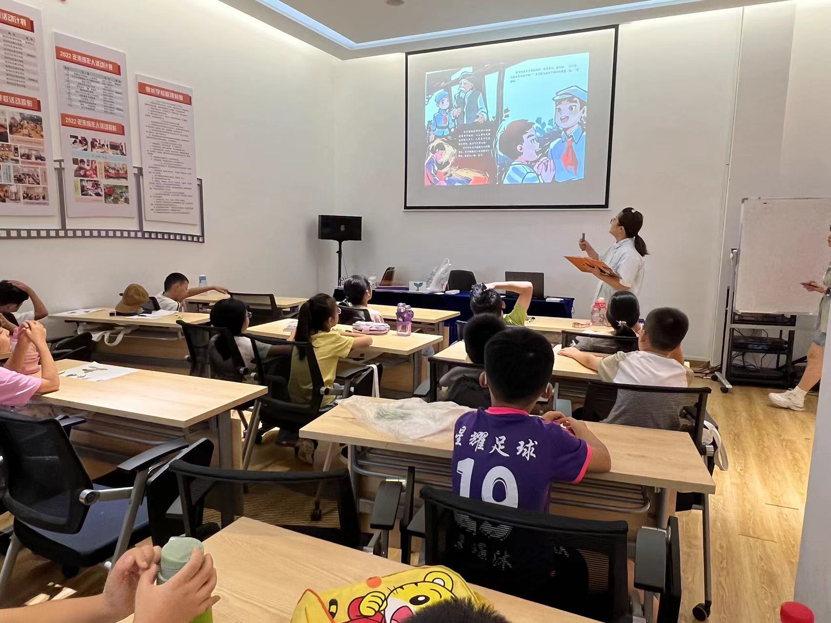7月26日上午,岩河社区关工委邀请了洛可社会工作服务中心的贺丽娜老师,为假日学校的孩子们带来了一堂红色教育系列的课程。