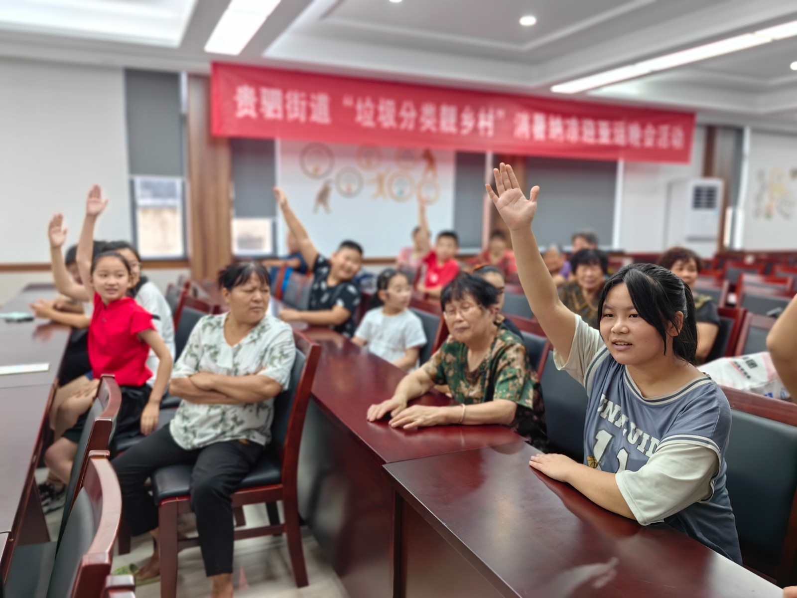 7月28日下午,贵驷社区老年康乐服务中心二楼会议室格外热闹。30余位社区居民及青少年们齐聚一堂,参加贵驷社区联合贵驷街道垃圾分类办开展的“垃圾分类靓乡村 消暑纳凉迎亚运”活动。