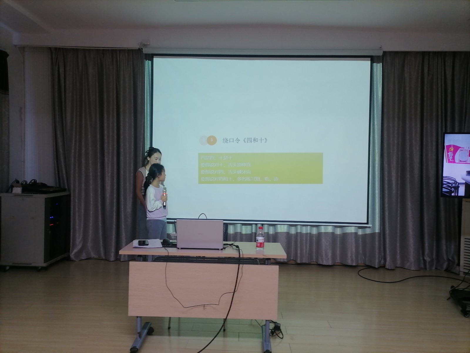 活动邀请区文化加油站老师王慧琳为小朋友们上课。老师先从最基本的表演站姿坐姿训练开始,一边讲解,一边做着示范,让孩子们更容易掌握要领。接着让孩子们上台进行播音主持,小朋友们跃跃欲试,纷纷举手参加。随后又从语言问题着手,针对字音不准、吐字无力两方面问题,带领孩子们进行舌操练习,提高唇舌力量和气息力度。