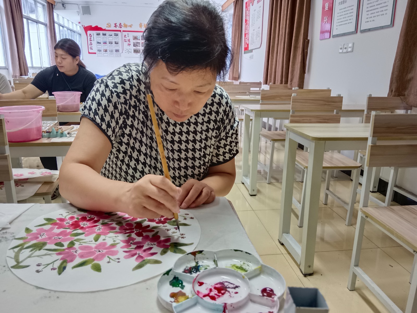 课堂上,童老师从握笔的正确方式、用墨调色、线条画法、画面构成等方面为居民详细讲解国画知识。之后进行逐个部分分解教学,看着老师在画纸上的展示,大家已经迫不及待要开始实操了,网格内企退居民和党员朋友们纷纷拿起画笔,进行着墨调色、线条勾画等。在老师的生动讲解和悉心帮助下,居民们都绘制出了令自己满意的紫薇花作品。企退陈阿姨表示:“我喜欢画花,但自己不懂技巧,平时也是自己瞎画画,今天通过这个课堂,跟着童老师学习了不少绘画技巧,让我受益匪浅。”