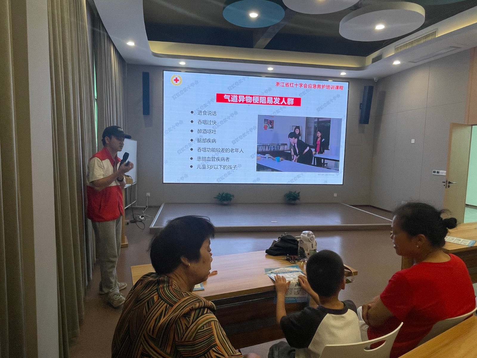 在培训中,红十字会的应急救护培训师给居民朋友们讲解了如何处理“气道异物梗阻”,通过了解什么叫气道异物梗阻,如何识别气道异物梗阻,如何处置气道异物梗阻来给居民们讲解如何对异物梗阻开展急救。结合生活中真实的案例,用生动、形象的语言让居民们学习到如何对异物梗阻开展急救、现场学习气氛活跃,学员们都认真学习,积极提问。
