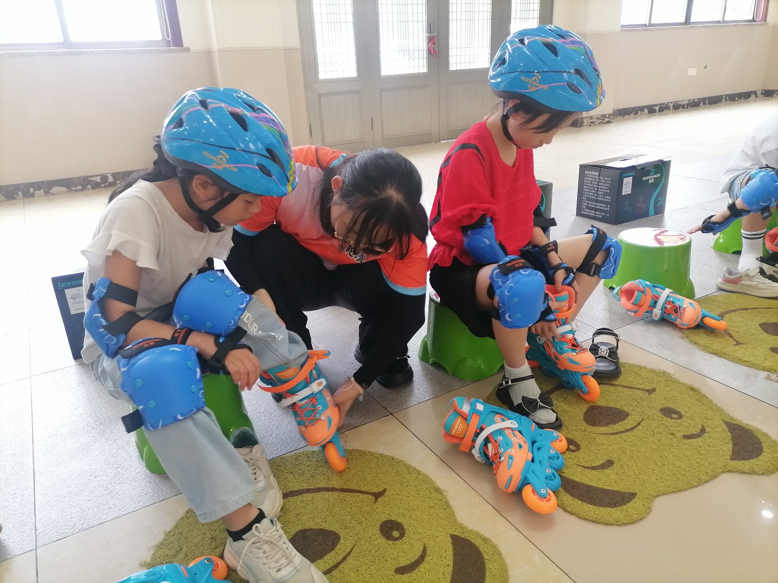 课堂上,教练先带领小朋友们进行了摇头、摆臂、拉伸等热身运动,“原地站立,脚放八字形按膝盖站立,很好,原地抬脚,结合指令,手扶膝盖抬脚踏步……”随后教练开始详细讲述并示范了轮滑的设备穿戴、基本知识和动作要领。小朋友们认真聆听,专心致志跟着教练练习,从原地抬脚、下蹲起立、八字行走到摔倒起来,经过反复认真训练,逐步掌握了轮滑的动作要领。“妈妈,你快看,我能站着不摔倒啦!”一阵稚嫩兴奋的童声在活动现场响起,石睿欣小朋友对自己的进步开心不已。