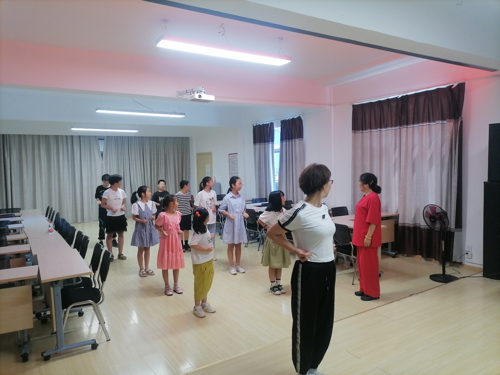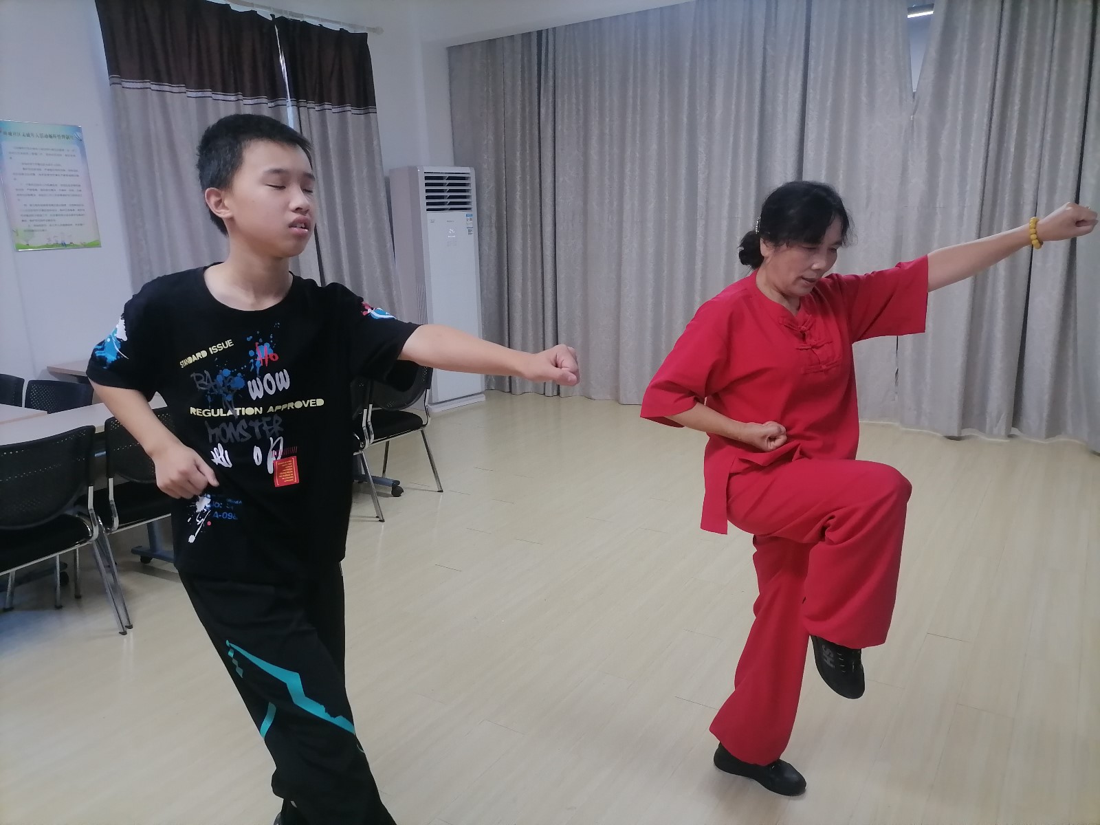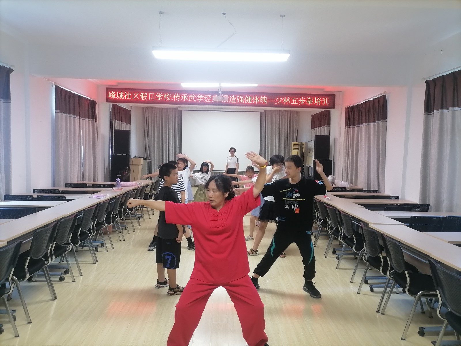 为进一步弘扬中华传统文化,增强青少年的体质,在全民健身日到来之际,8月7日上午,峰城社区假日学校邀请社区太极武术队骨干贺如娟老师,组织开展了青少年少林五步拳培训活动。