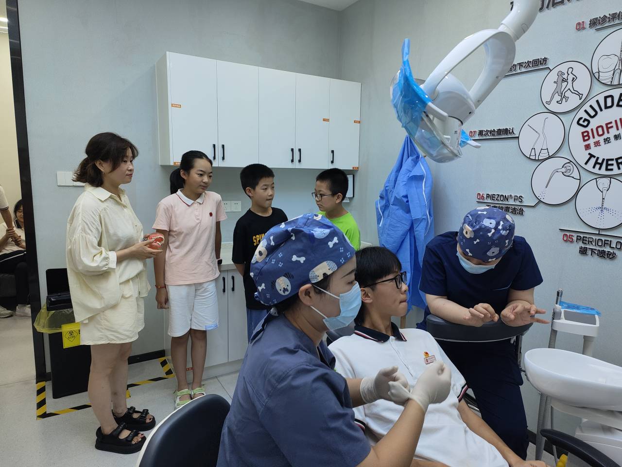 为提高青少年爱牙意识,培养良好的卫生习惯,增加他们的学习兴趣,8月8日上午,中街社区关工委联合镇海儿童口腔医院,邀请了骆驼中学学生共同开展了“牙医体验日”活动。活动中医生先给青少年们带来了一节爱牙护牙知识课堂,科普口腔方面的相关知识和注意事项,让青少年对口腔的保护有了深入的了解。课堂结束之后,青少年也是依次参观牙科器材和设备,也进行了口腔检查。通过此次活动,青少年不仅对自己的口腔保护有了进一步的认知,也对牙医这一行业有了一定的了解。
