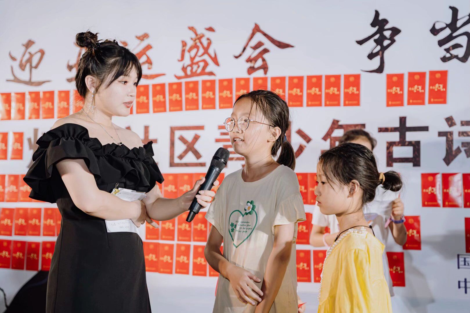 “胜日寻芳泗水滨,无边光景一时新......”伴随着古韵悠扬的乐曲,诗词大赛拉开帷幕。小小参赛者们声情并茂的朗读,让活动高潮迭起,也吸引了许多居民驻足观赏。本次活动吸引了百余名青少年积极参与,不仅展现了青少年们的风采,也为他们提供了分享交流的平台,更让大家感受到了中华五千年浩瀚历史的魅力。除此之外,宁波镇海农村商业银行股份有限公司国网浙江省电力有限公司宁波市镇海区供电公司还为辖区居民设立了咨询点位,对水电挂扣折扣活动进行现场答疑。