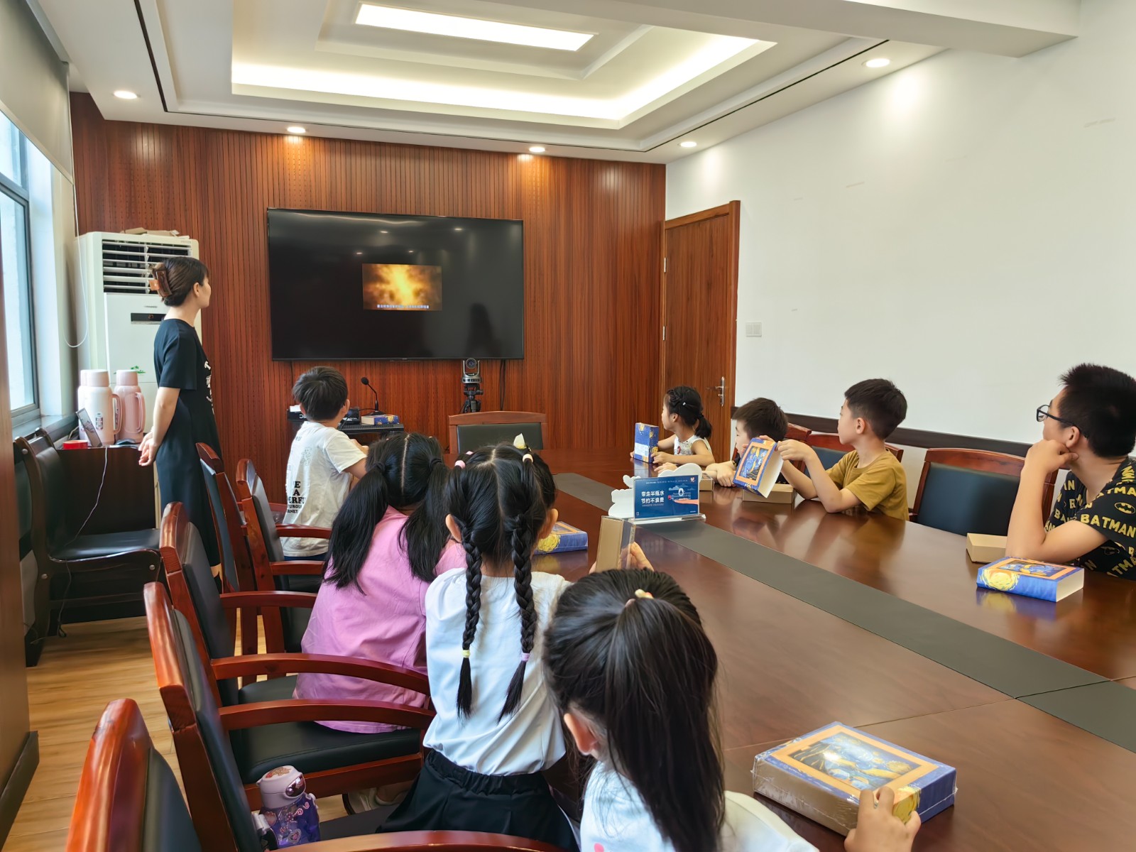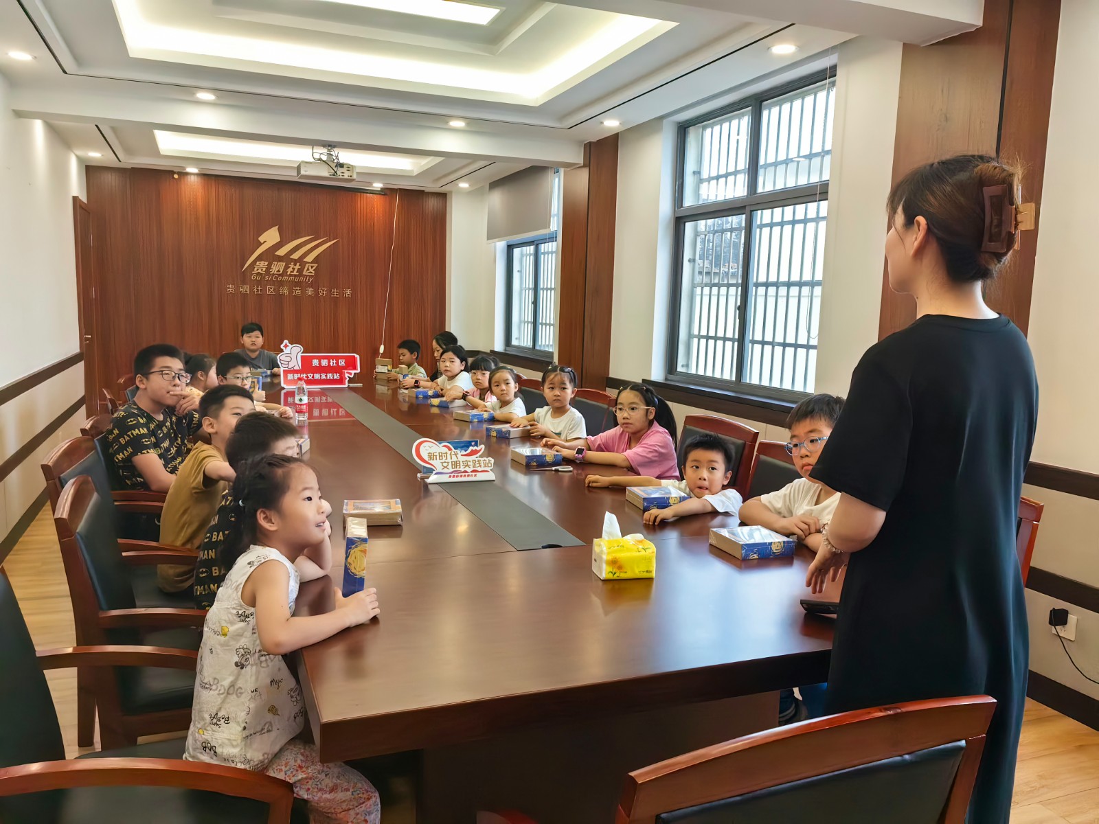 活动伊始,社区工作人员为孩子们播放了有关星空的一些唯美视频和宇宙知识,让孩子们体会到了美的所在。然后,社工为在场的每一位孩子分发了制作星月夜的材料。孩子们迫不及待地打开包装盒,拿出黏土、刮板、金粉、木质板、颜料等,在社工老师的带领下,将对应颜色的黏土粘到木质板上,用刮刀把多余的黏土刮下来,按照《星月夜》画作对应的位置摆放整齐,最后用金粉、颜料进行修饰,就这样,一幅充满运动和变化的星空呈现在孩子们的手中。