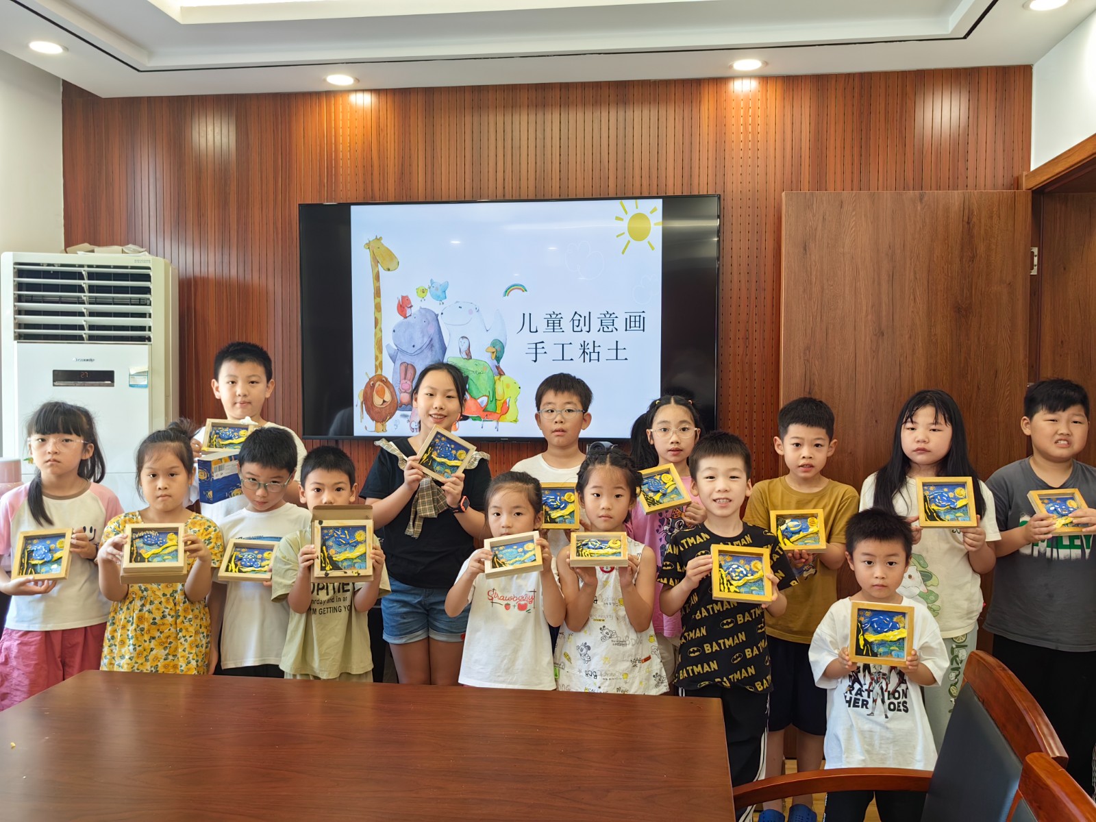 在似要爆炸的星星下是安详宁静的村庄,火焰燃烧一般的柏树连接着地面与星空,空中挂着光芒四射的云朵与如太阳一般明亮的月亮·····这幅《星月夜》是著名的荷兰后印象派画家梵高于1889年在法国圣雷米的一家精神病院里创作的一幅油画。8月9日上午,贵驷社区新时代文明实践站所邀请辖区10余位小朋友齐聚一堂,用黏土复刻这一旷世名作。