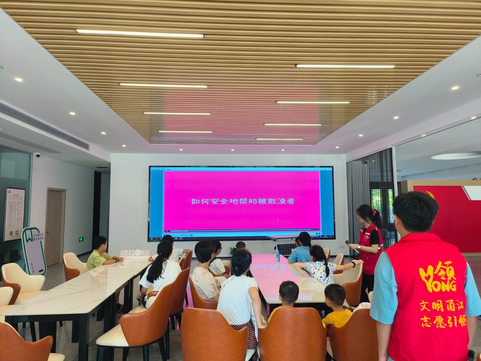 来自万象社区网格员通过播放校园欺凌宣传片,结合相关典型案例,讲解什么是校园欺凌、校园欺凌的主要行为、校园小霸王是如何出现的等形式,教育孩子们,校园欺凌是一个严肃且严重的社会问题,它的不良影响,不仅仅体现在受害者身上,也给施暴者的心灵成长以及未来在社会中的进步增添了巨大阻力。在面对校园欺凌时要坚定勇敢地向欺凌说“不”,学会寻求外界的帮助,并用法律武器保护自己的人身安全。讲座中,社工与孩子们积极互动,使孩子们不仅对校园欺凌的危害有了更进一步的认识,更是从生动的案例中吸取了经验教训,增强了法治观念,提高了自我保护意识。