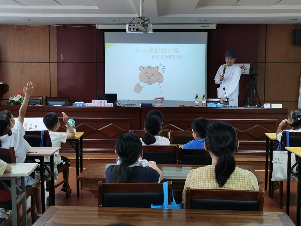 为丰富社区儿童的暑期文化生活,普及青少年口腔健康知识,传播护齿健康知识,近日,沙湾社区假日学校邀请北仑口腔医院的医生走进假日学校为学生带来“青少年口腔健康知识讲座”
