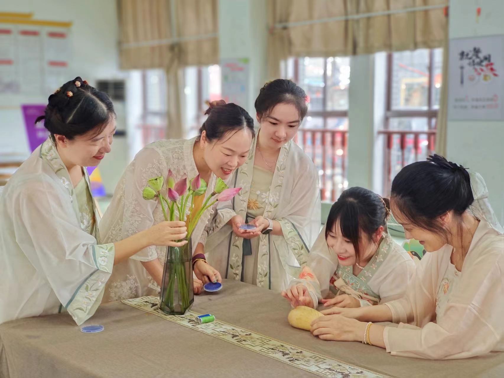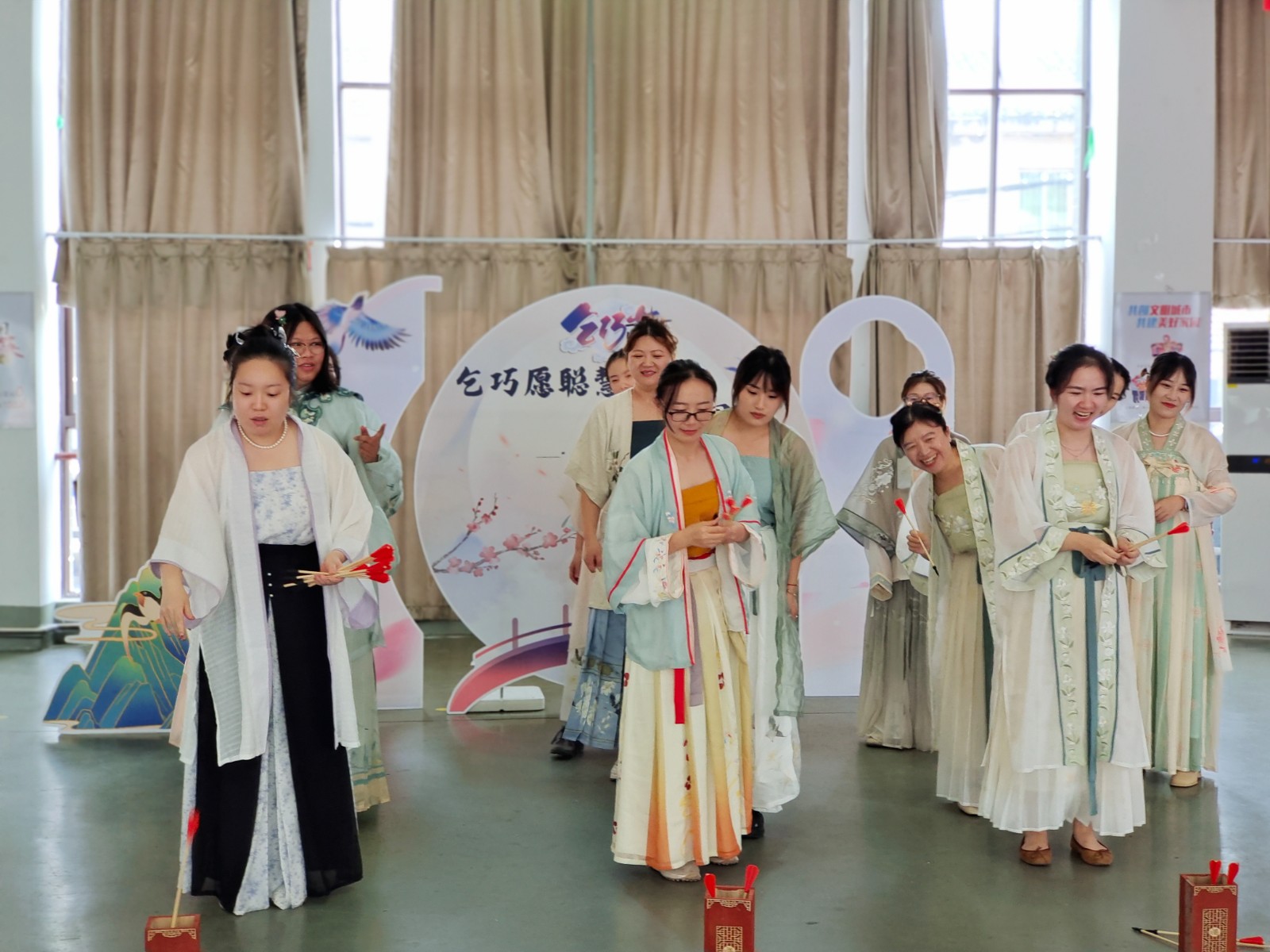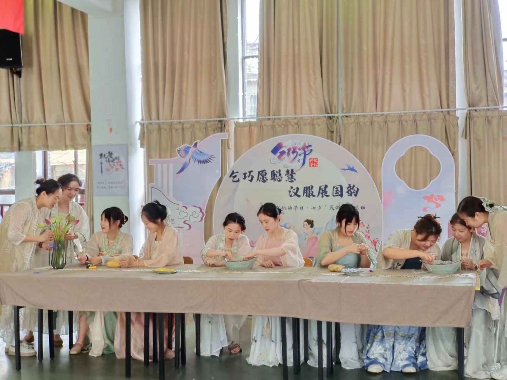 七夕节,又称乞巧节、女儿节等,是中国民间传统节日。为弘扬中国传统文化,丰富传统节日文化内涵,营造积极向上的民俗文化氛围,进一步营造全民喜迎亚运,建设文明蛟川地浓厚氛围。8月17日下午,清水浦村文化礼堂、临江社区新时代文明实践站、虹桥社区新时代文明实践站、石塘下社区新时代文明实践站共同开展了“乞巧愿聪慧 汉服展国韵——我们的节日·七夕“民俗体验活动。